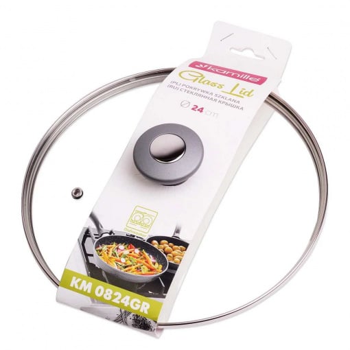 Крышка стеклянная d-24 см с металлическим ободком универсальная Kamille 0814 КМ GR
