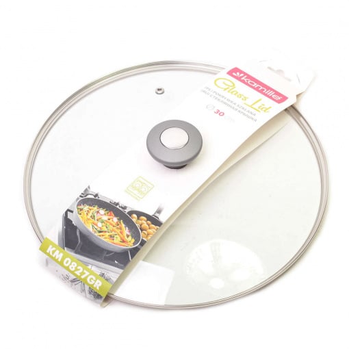 Крышка стеклянная d-30 см с металлическим ободком универсальная Kamille КМ-0827GR