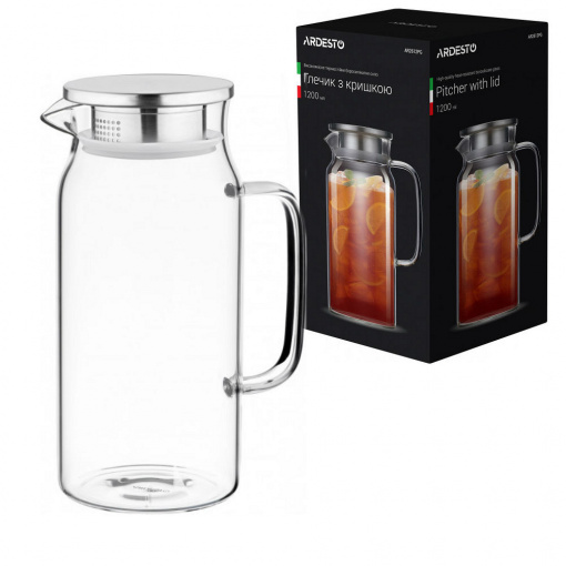 Кувшин Ardesto с крышкой 1200 мл боросиликатное стекло нержавеющая сталь AR2612PG