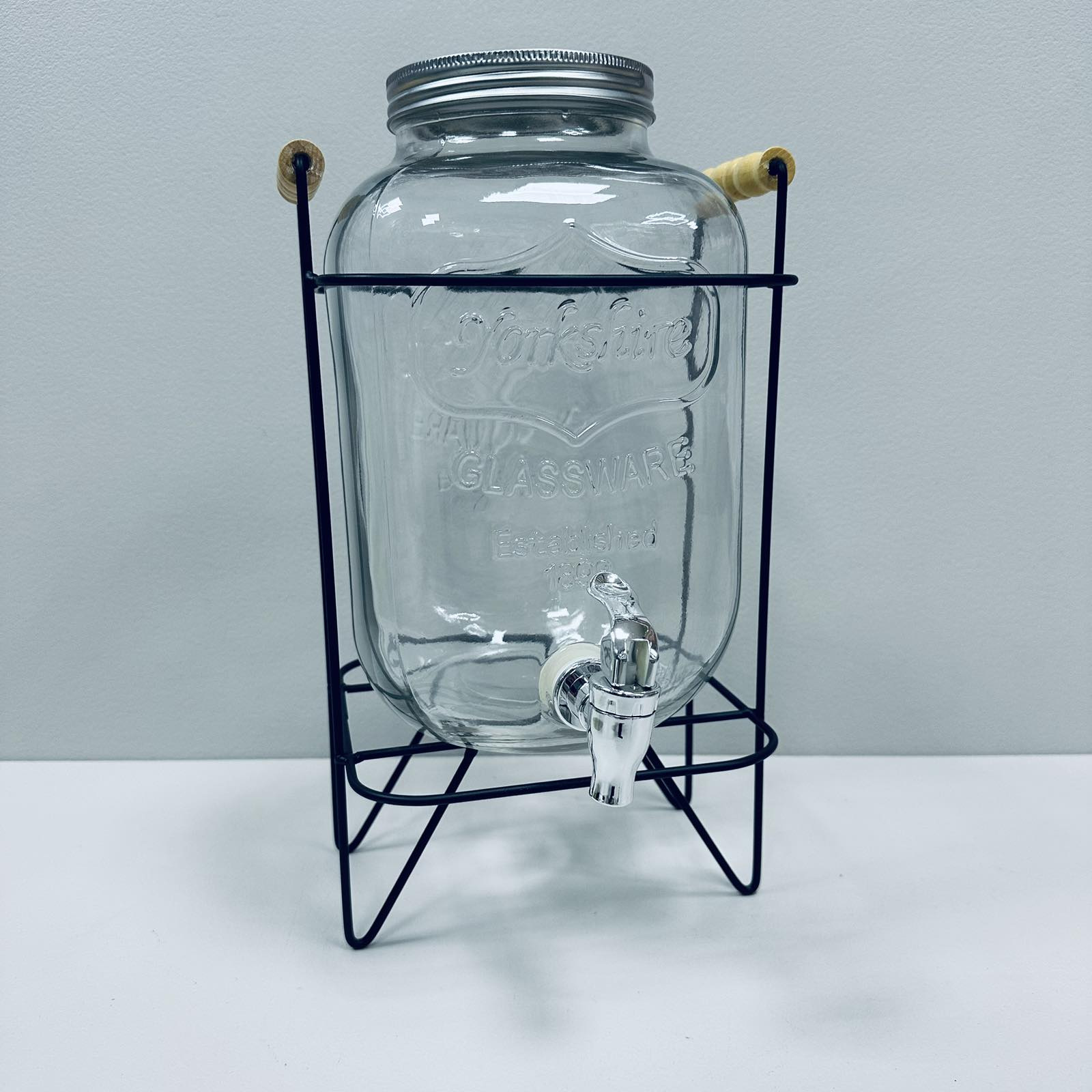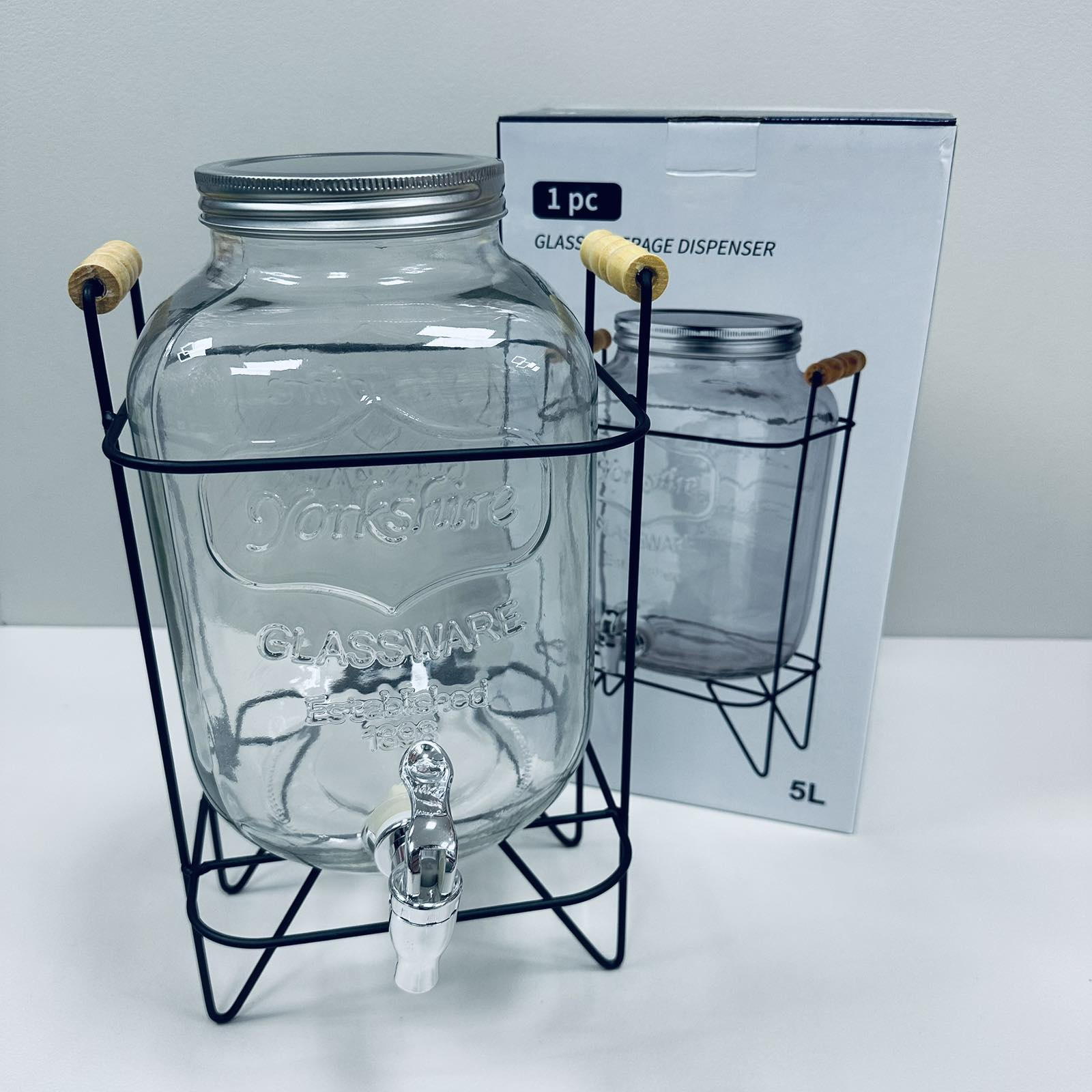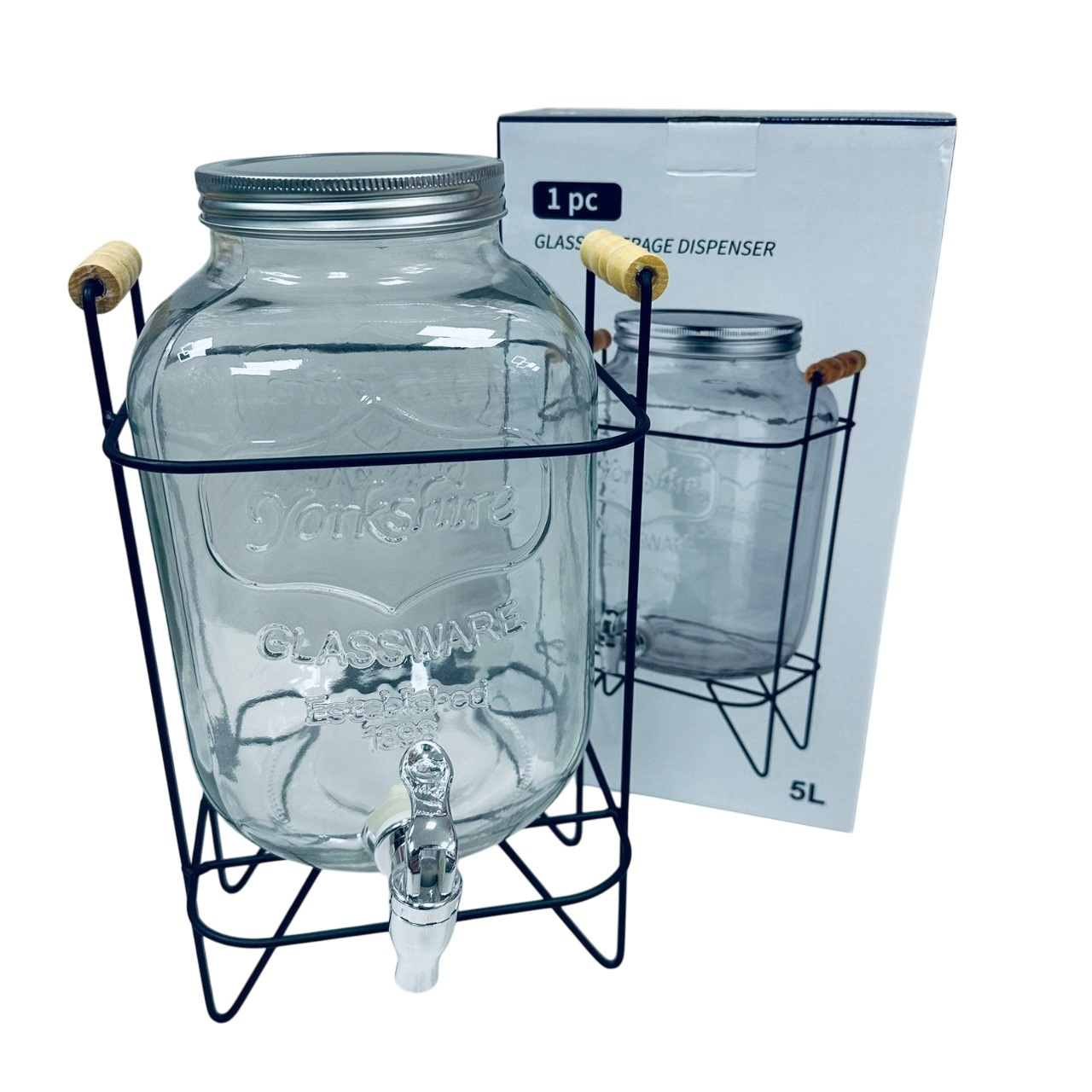 Лимонадник стеклянный для напитков S&T 3424 с металлической крышкой на подставке 5 л (23706)