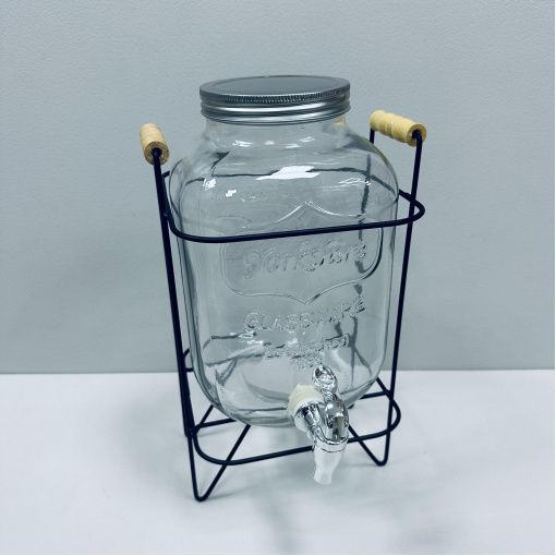 Лимонадник стеклянный для напитков с металлической крышкой на подставке 5 л S&T 3424
