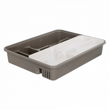 Лоток для столовых приборов со вставкой отличается усовершенствованной конструкцией. Изделие комплектуется дополнительным лотком для столовых приборов, формируя 2-х этажное конструкцию. Серо-белая цветовая гамма изделия доступна в 4 вариантах.  Лоток отличается высоким качеством, доступной стоимостью и отличными эксплуатационными свойствами.