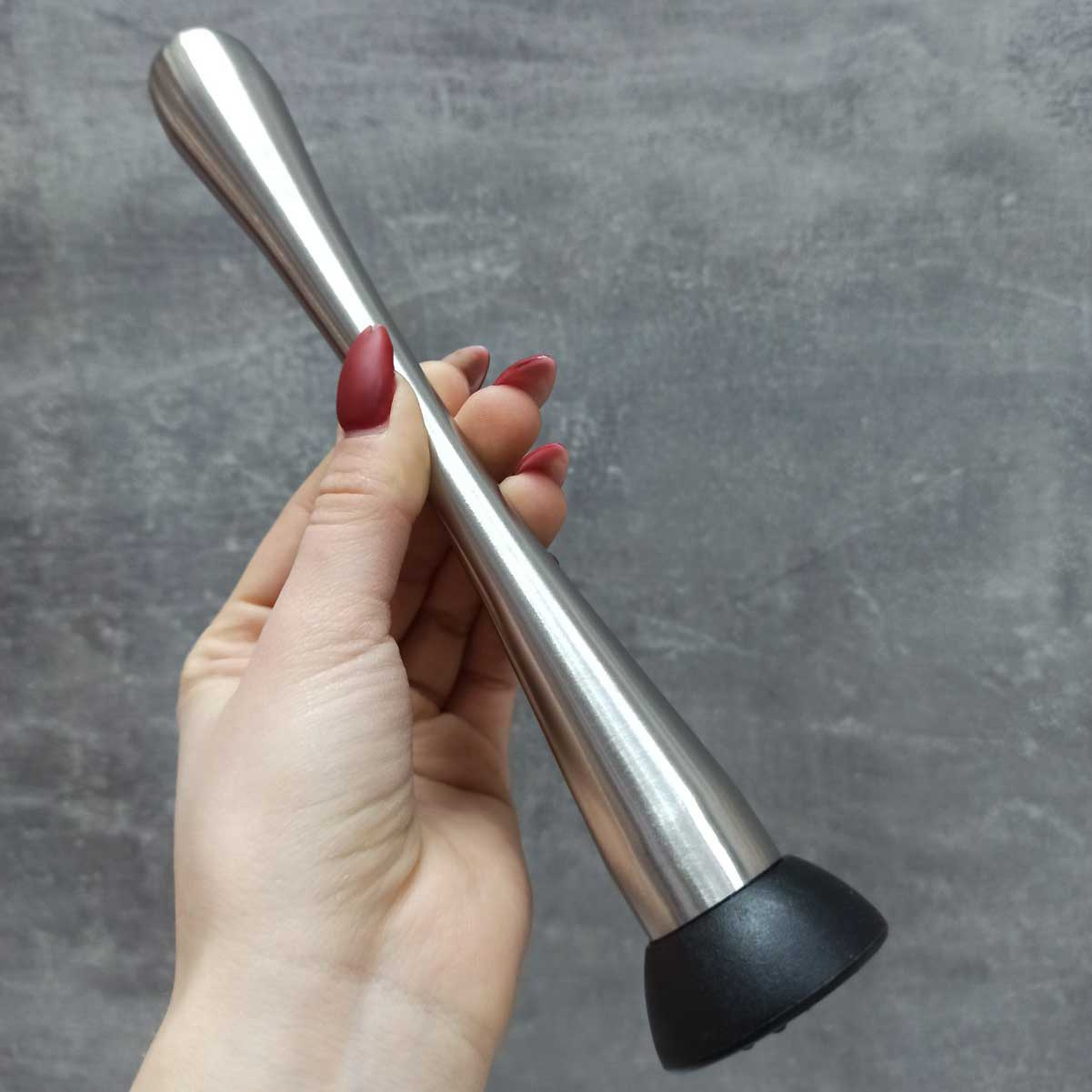Инструмент для профессионального бармена, применяется для приготовлении коктейля - раздавливания в шейкере: фруктов , листьев и других различных ингредиентов. Разработана удобная форма рукоятки и крупные зубцы которые эффективно обрабатывают ингредиенты при минимальном усилии самого бармена.