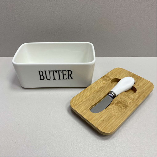 Масленка керамическая с ножом Butter A-PLUS 0480-2 белый