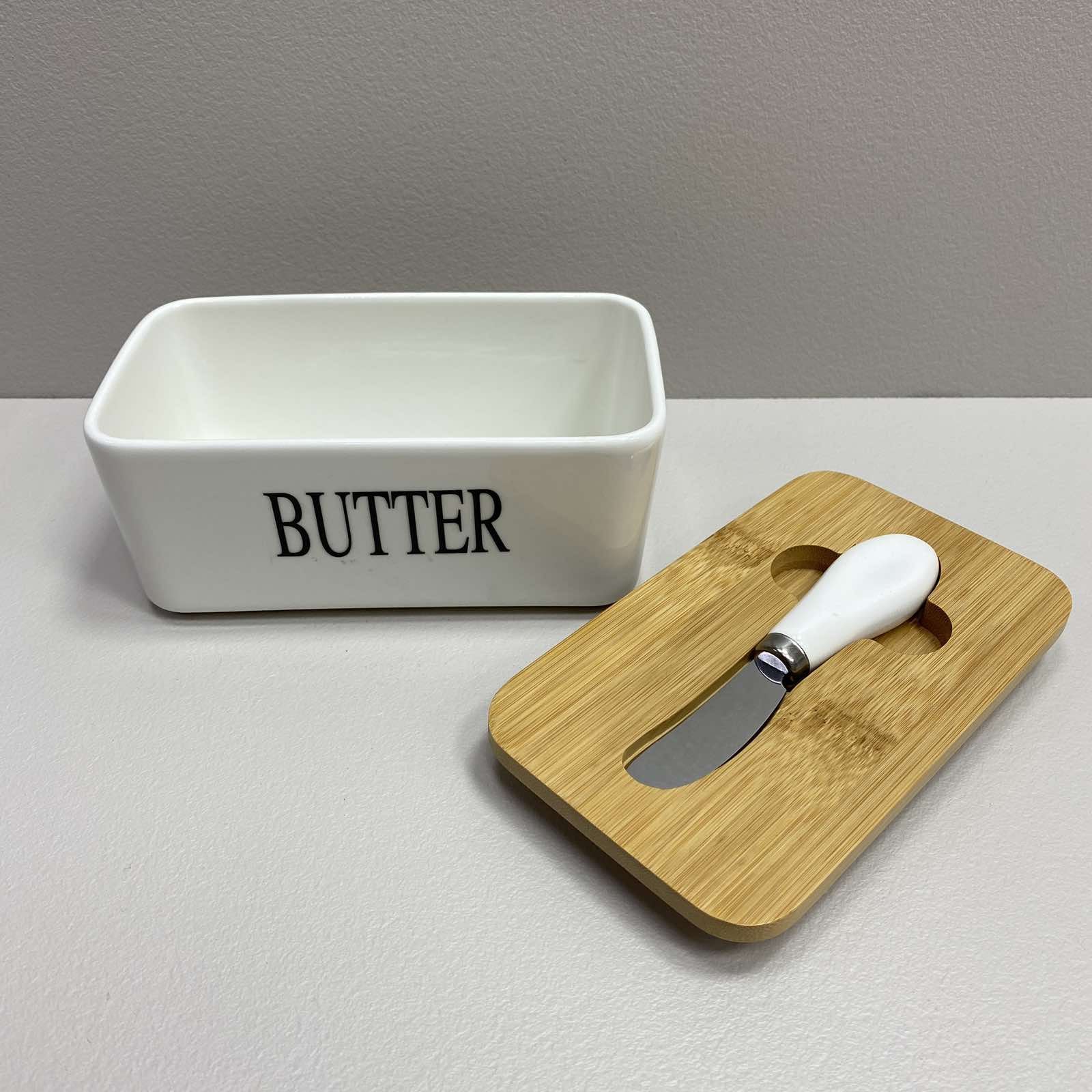 Масленка керамическая с ножом "Butter" A-Plus 0480-2 белая Масленка с ножом – это удобное устройство для хранения сливочного масла в холодильнике. Масленка поможет вам хранить масло в холодильнике дольше, так как оно будет оставаться закрытым. Характеристика: Вид: Масленка Материал: Керамика Материал крышки: Бамбук Материал ножа: Сталь Форма: Прямоугольная Длина: 17 см Ширина: 9,5 см Высота: 7,7 см Цвет: Белый