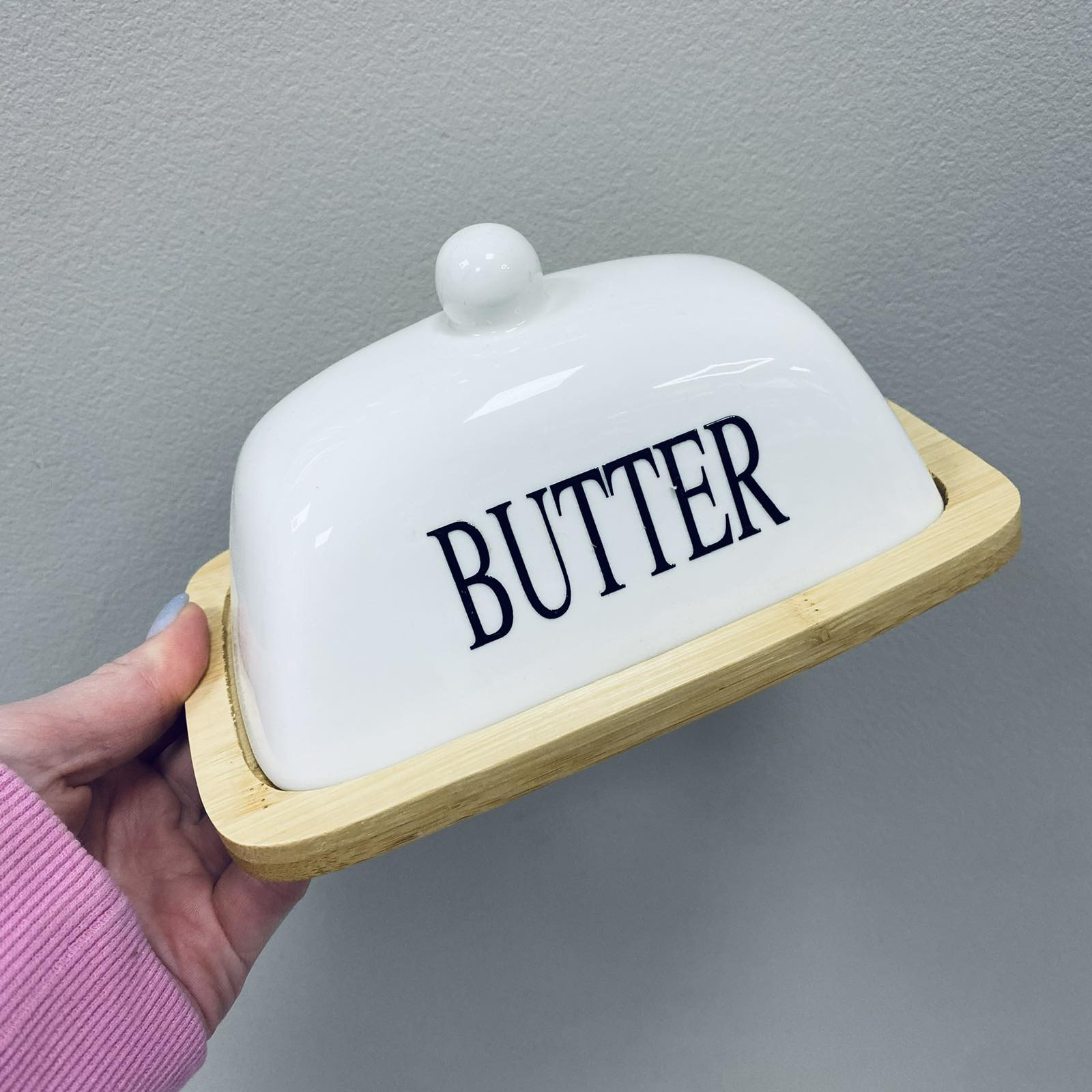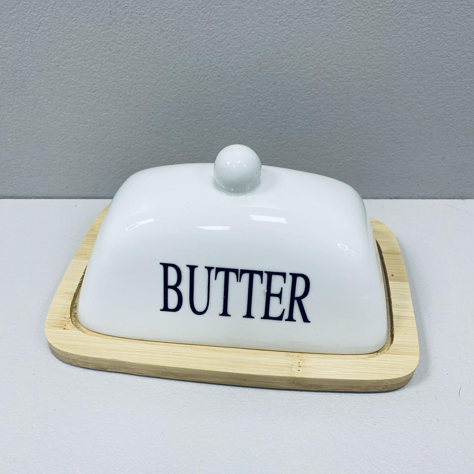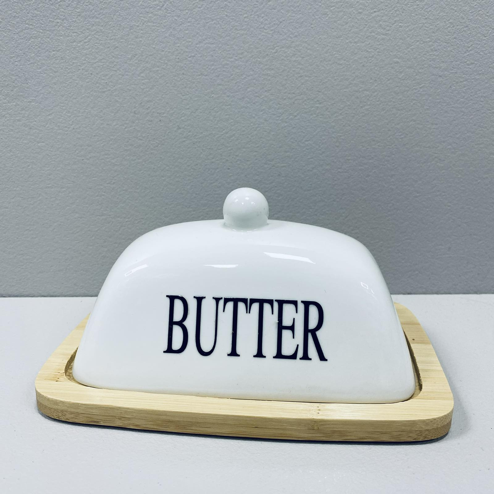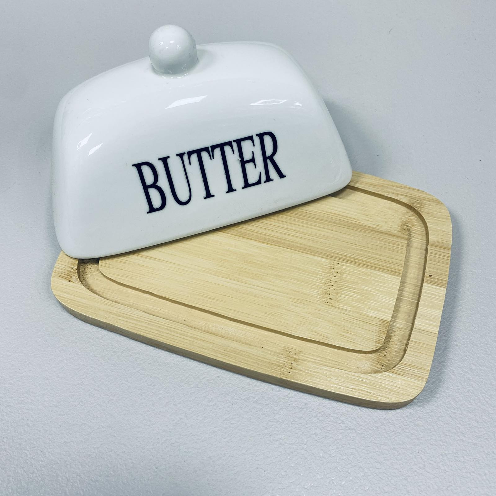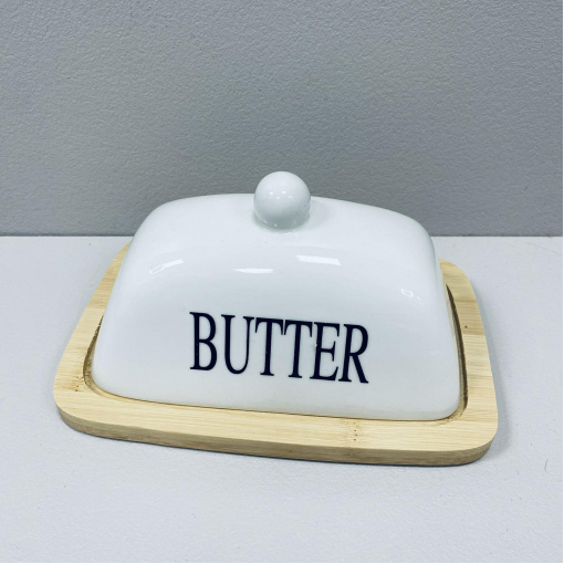 Масленка керамическая на бамбуковой подставке "Butter" A-Plus 7347 Характеристика: Вид: Масленка Назначение: Для хранения масла Материал: Керамика Материал подставки: Бамбук Высота: 9,5 см Размер: подставки – 18,3*12,2 см, крышки – 16*9,5 см