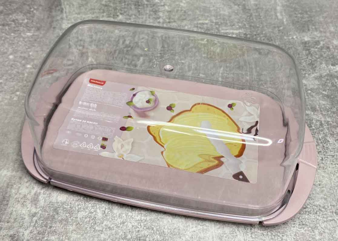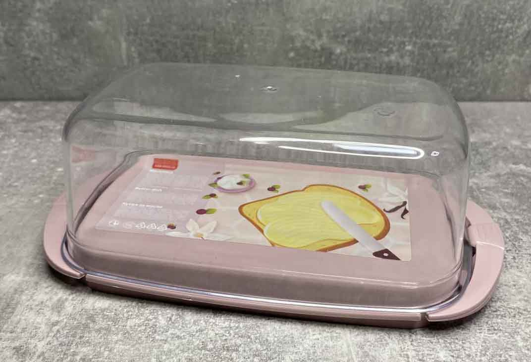 Подробные характеристики Масленка пластиковая Алеана 17,1*9*6,6 см прозрачный/ фрезия 167009.