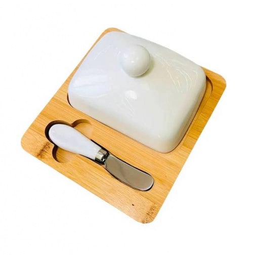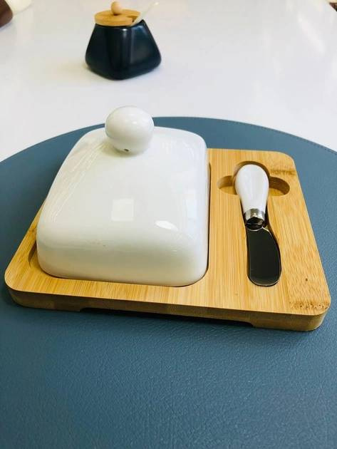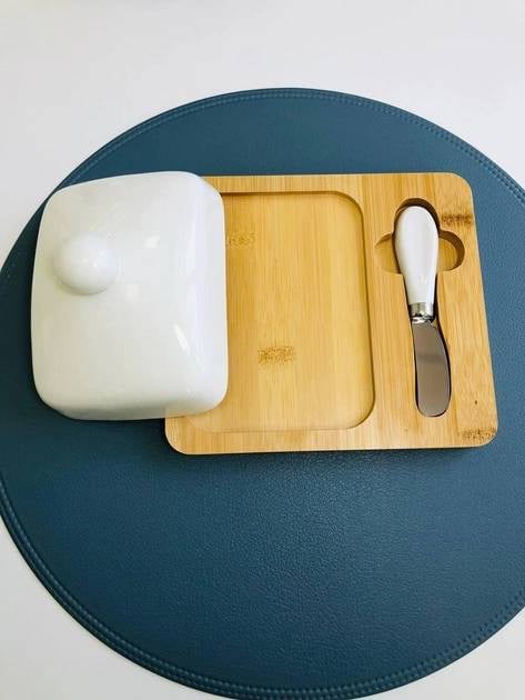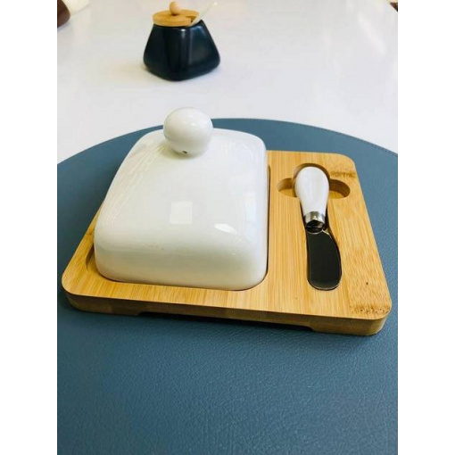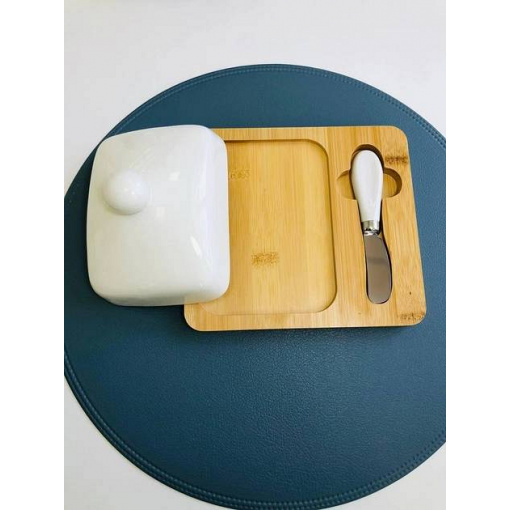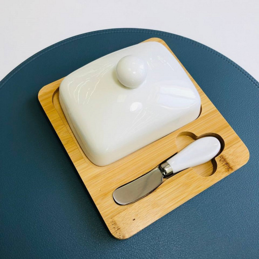 Масленка с ножом фарфоровая на бамбуковой подставке "Стокгольм" Olens 102-209