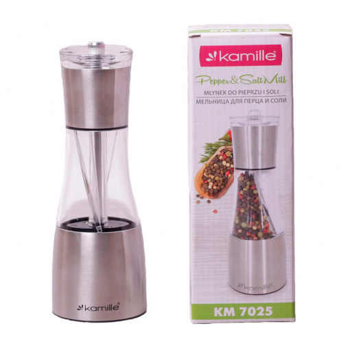 Мельница для соли и перца Kamille (7025) имеет два отделения, что позволяет держать в ней одновременно соль и перец, два вида соли или пряностей. Э