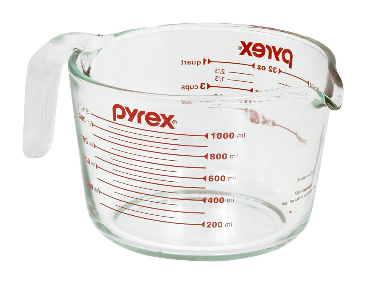 Мерный стакан Pyrex — необходимый инвентарь для каждой хозяйки. Стакан имеет удобную мерную шкалу в миллилитрах и жидких унциях. Мерная чашка изготовлена из жаропрочного боросиликатного стекла. Удобная ручка и изогнутый носик позволяют легко выливать жидкости. Яркая мерная шкала хорошо видна снаружи и изнутри. Стакан не впитывает запахи, не меняет вкус и аромат продуктов, легко чистится и моется, в том числе, в посудомоечной машине.