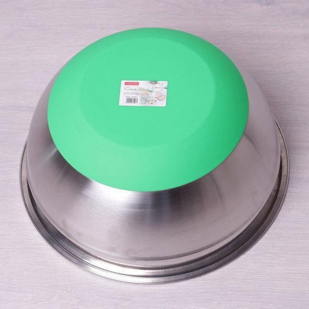 Подробные характеристики Миска Kamille d-28 х 13 см из нержавеющей стали с силиконовым дном Kam-4351.