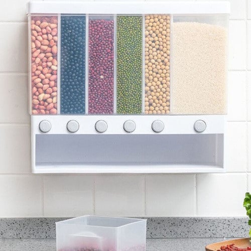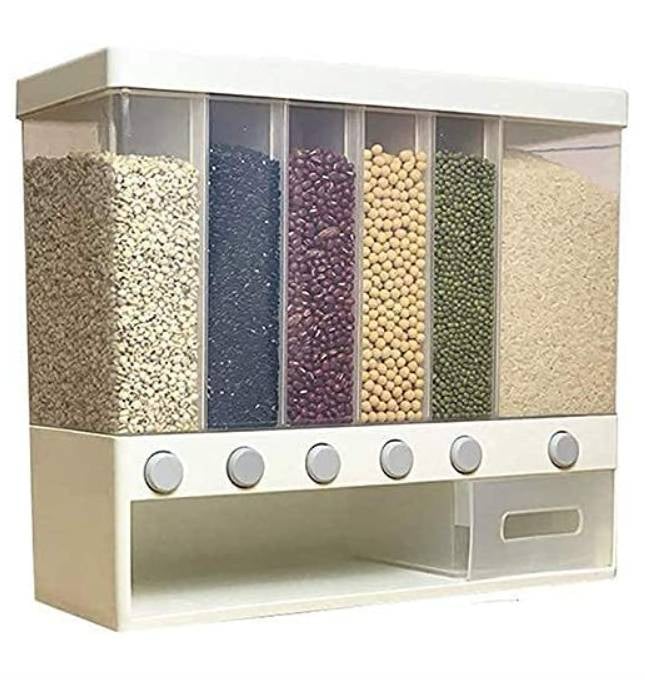 Многофункциональный диспенсер для сыпучих продуктов Multiple Dispenser A-Plus 383 MD Кухонный органайзер для сухих сыпучих продуктов, предназначенный для хранения продуктов, в нем имеется шесть отсеков, разделенных снимаемыми перегородками, для предотвращения смешивания продуктов. Перегородки можно снять для увеличения объема того или иного отсека. Таким образом, увеличивается объем отсека для любимых продуктов, а оставшиеся небольшие отсеки используются для хранения реже используемых зерен. Характеристика: Вид: Диспенсер Назначение: Для сыпучих продуктов Материал: Пластик Цвет: Прозрачный/белый Размер: 37*32*14,5 см