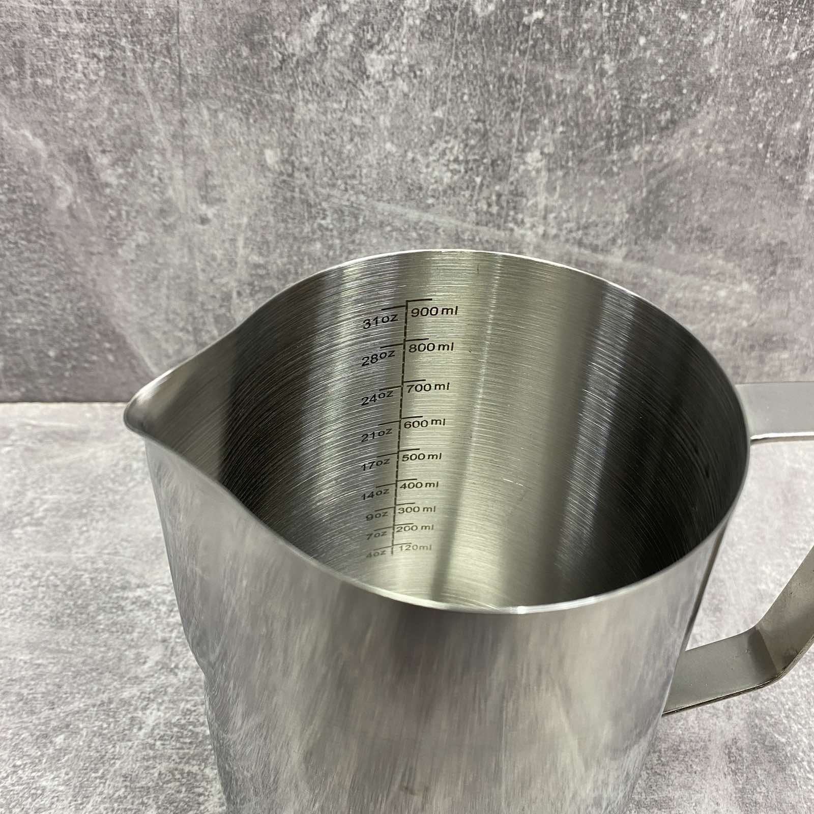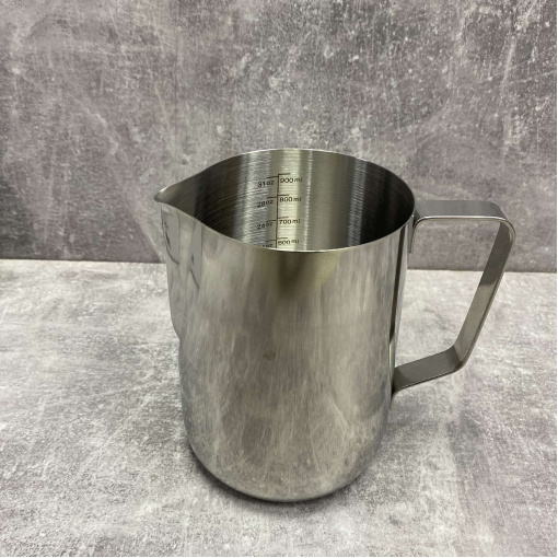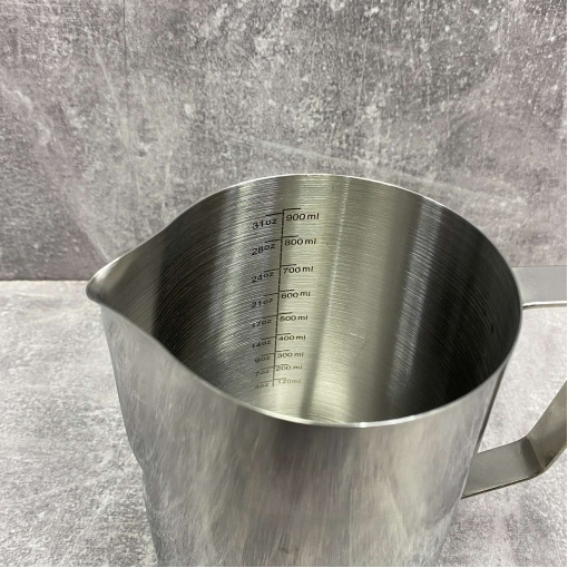 Молочник из нержавеющей стали 900 мл с носиком и ручкой. Нанесена удобная шкала для удобства приготовления. Можно мыть в посудомоечной машине.