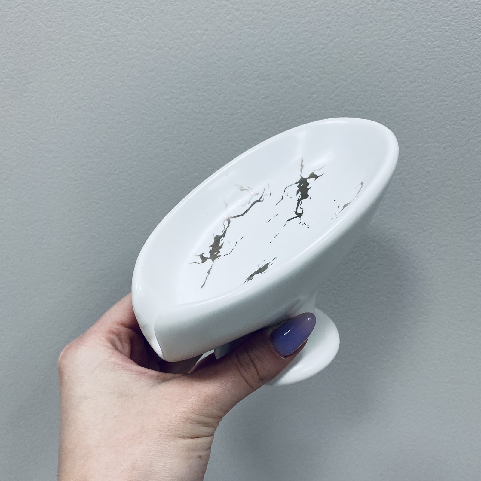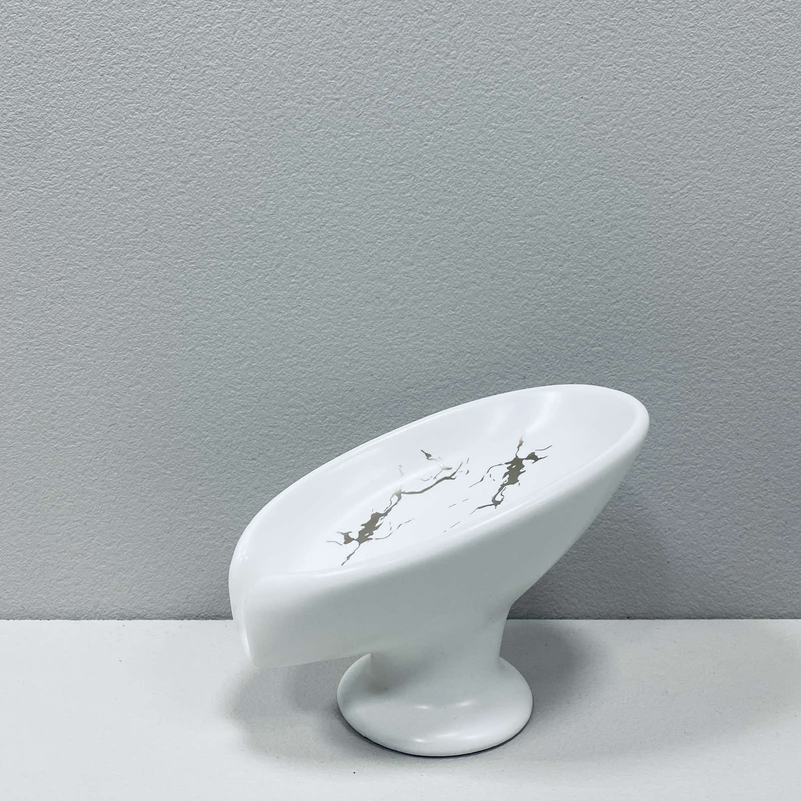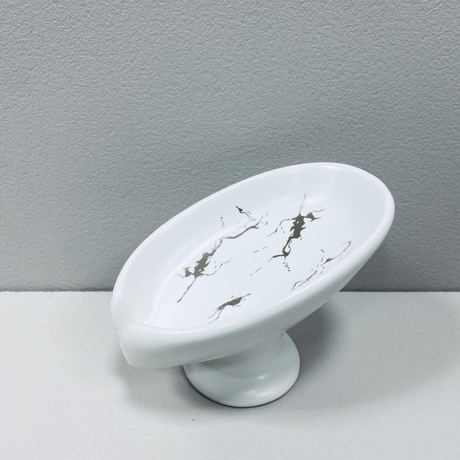 Мыльница керамическая A-PLUS 3988 h - 9,7 см Белый мрамор