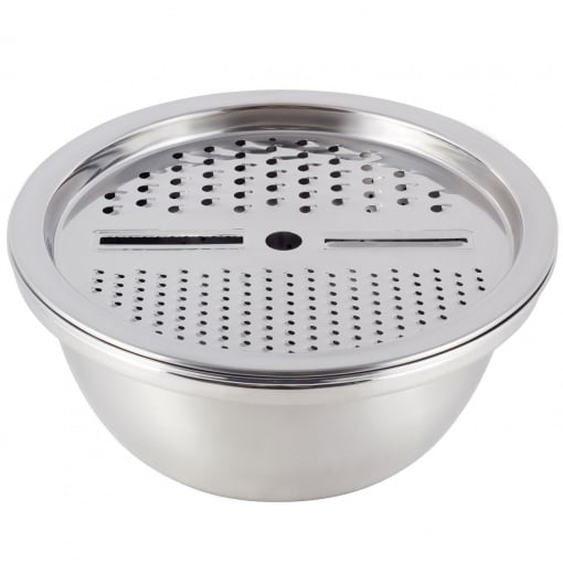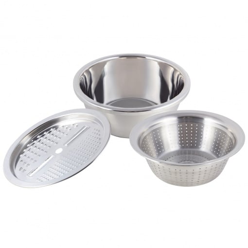 Миска из нержавеющей стали полезный аксессуар для вашей кухни, который поможет смешивать все, что пожелаете омлет на завтрак или сливки для десерта, компоненты для салата или тесто для ароматных блинчиков к чаю. Дуршлаг необходим для приготовления различных блюд, для отделения жидкости от твердых веществ, мытья и промывки ягод, грибов, мелких фруктов и овощей, а также отцеживания сыворотки. Ручная терка- для шинковки 3-х гранная, из высококачественной нержавеющей стали увеличенной толщины. Прочный, надежный и качественный кухонный аксессуар для профессионального и домашнего использования.