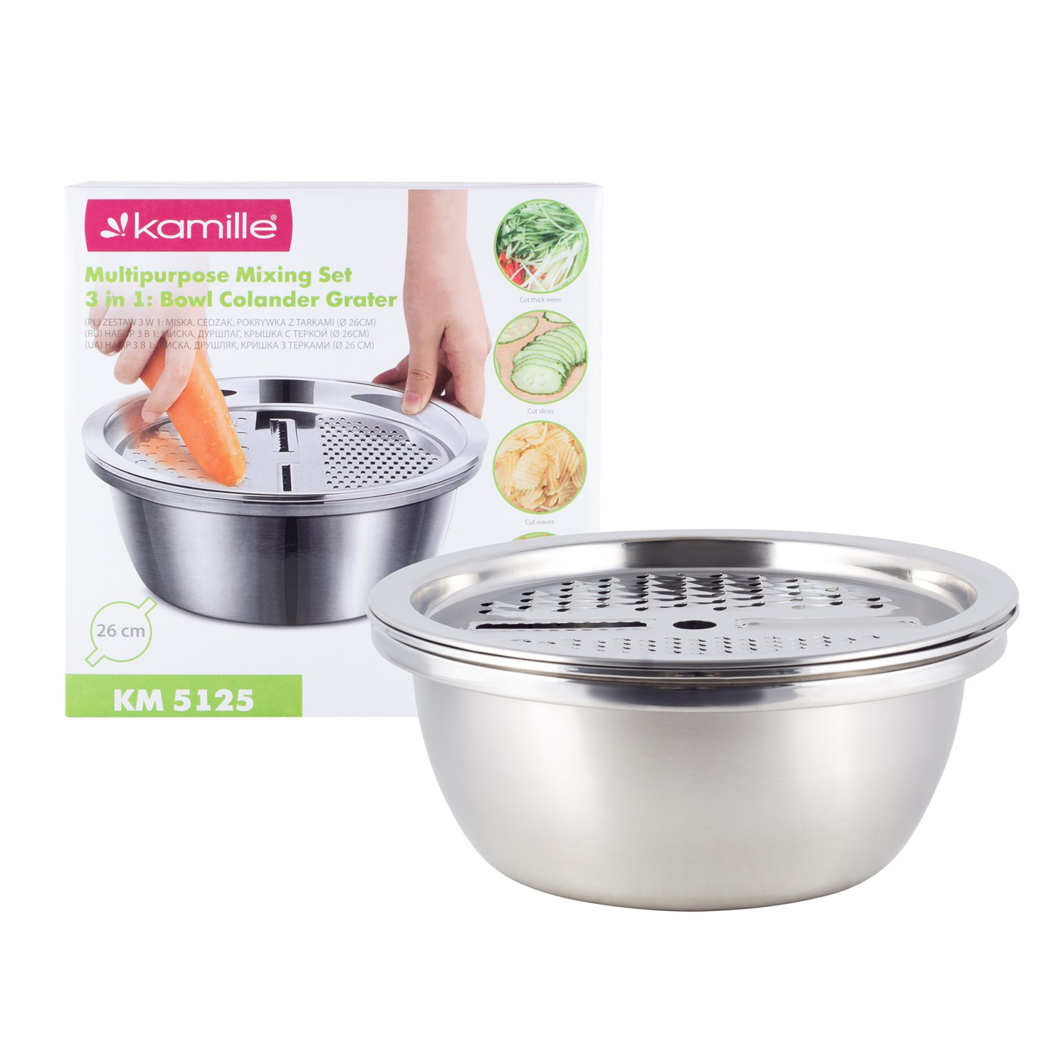 Набор 3 в 1 (миска, дуршлаг, терка) из нержавеющей стали Kamille KM-5125