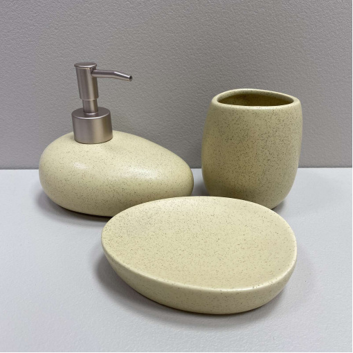 Набор аксессуаров для ванной комнаты 3 предмета S&T Loft 887-09-01-1 Характеристика: Вид: Набор аксессуаров Назначение: Для ванной комнаты Материал: Керамика Количество в наборе: 3 Комплектация: Дозатор для мыла, стакан, мыльница Размер: дозатор - 14*9,5*12,5 см, стакан -7,3*10 см, мыльница - 13*9,5*3 см