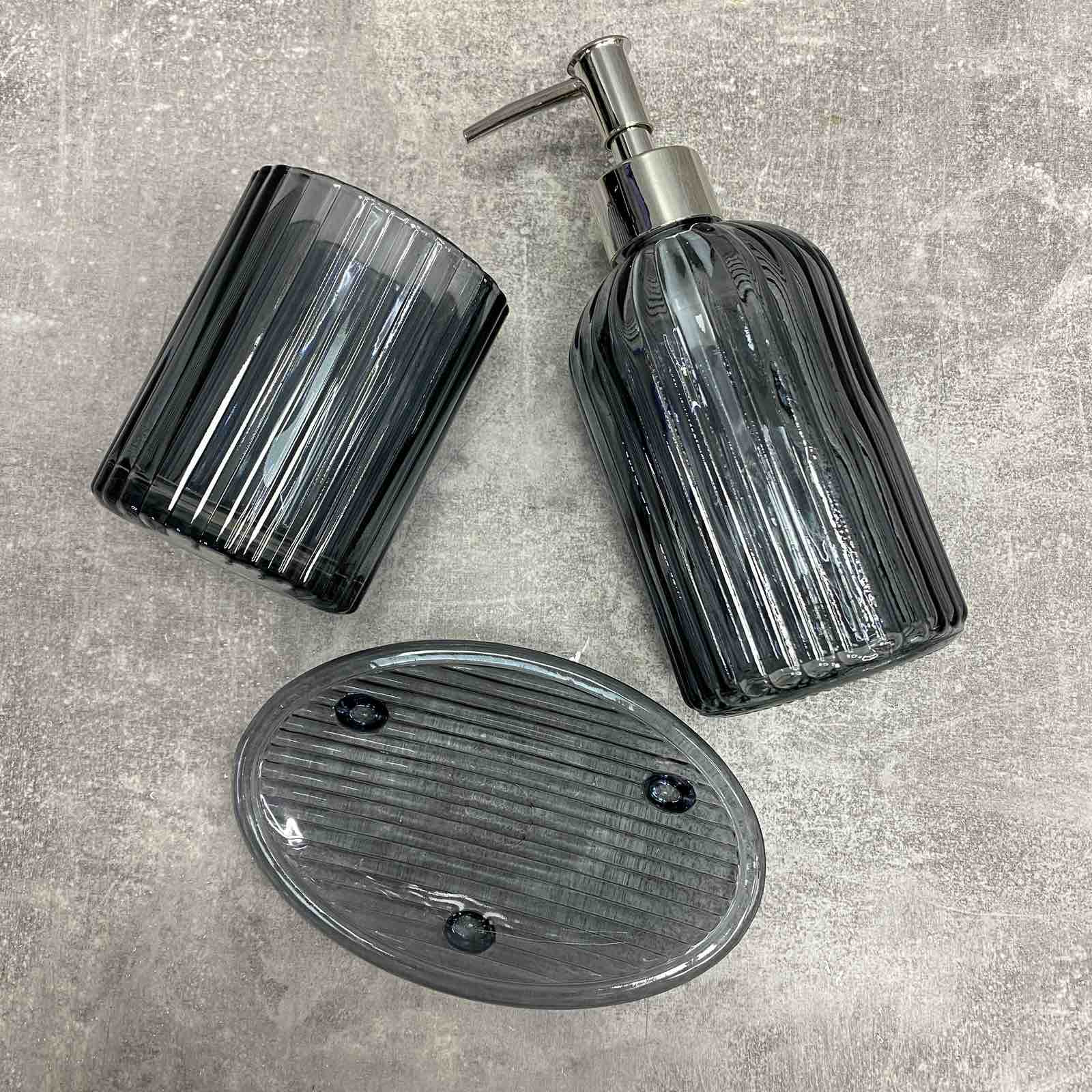Набор аксессуаров для ванной комнаты из тонированного стекла Flora ARI GREY 3 предмета S&T 888-159