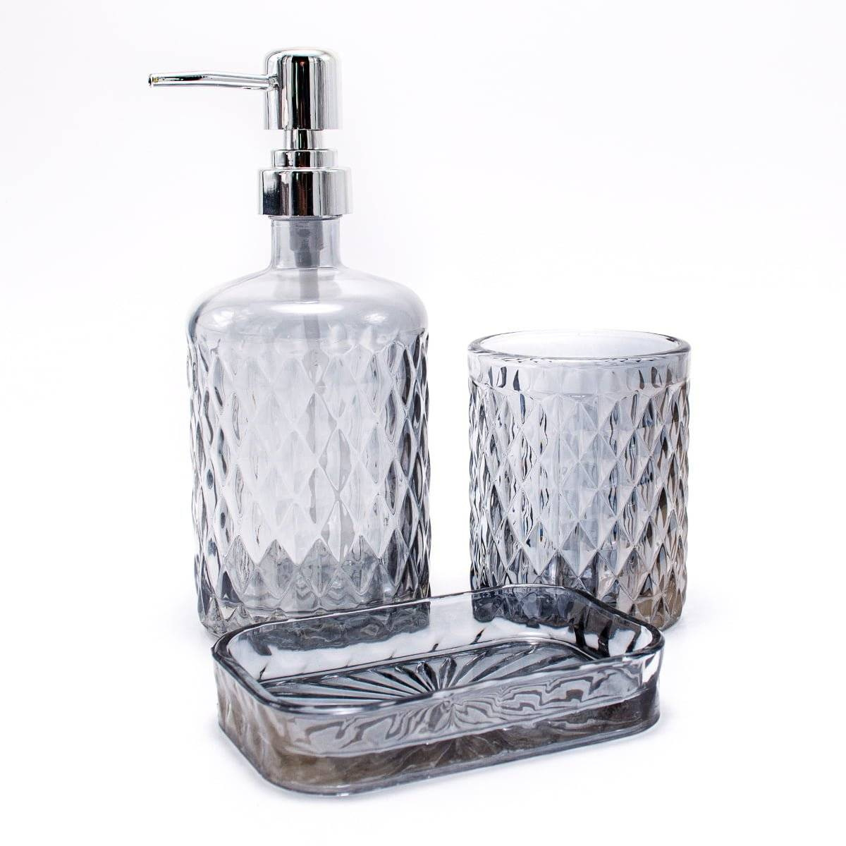 Набор аксессуаров для ванной комнаты стеклянный "Аргайл графит" 3 пр S&T 888-157