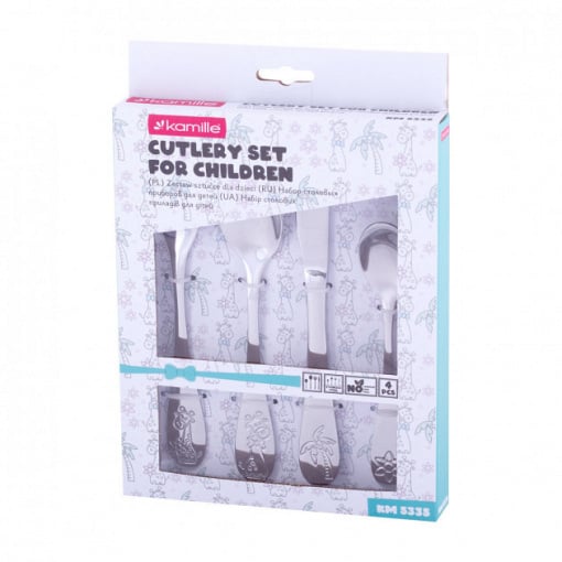 Набор детских столовых приборов 4 предмета из нержавеющей стали Kamille KM 5335