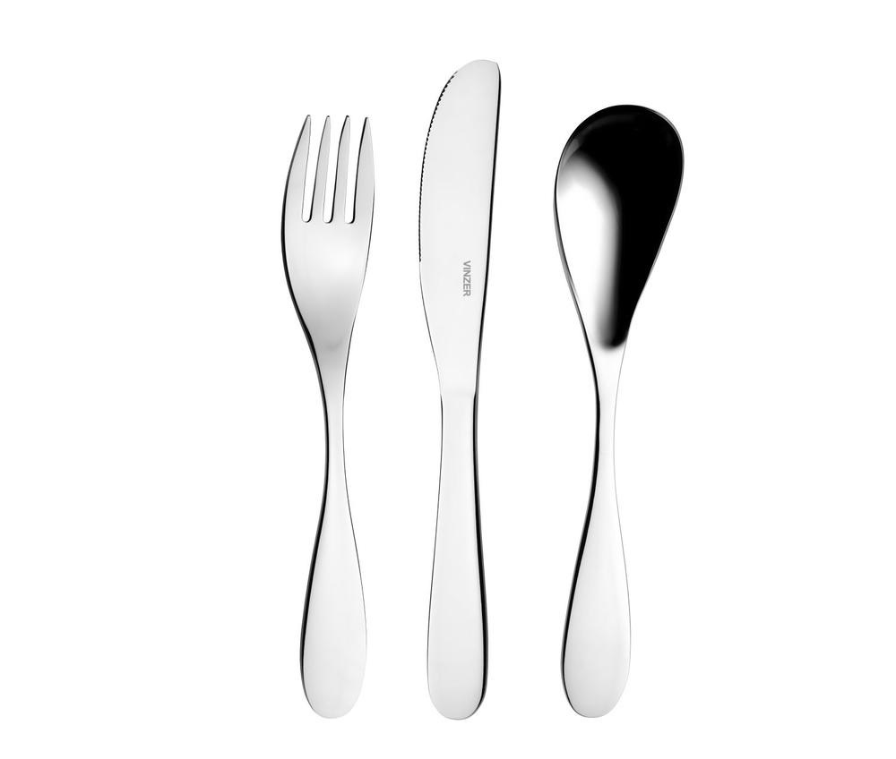 Набор детских столовых приборов Vinzer — идеальный выбор, чтобы научить ребенка правильно пользоваться ложкой, вилкой и ножом. Размер приборов небольшой и будет хорошо помещаться в детскую ручку. Приборы имеют глянцевую полировку, которая не царапается и со временем не темнеет. Для изготовления приборов использована качественная нержавеющая сталь, которая не содержит искусственных компонентов и соответствует всем нормам безопасности. Металл не деформируется и не восприимчив к воздействию кислот и щелочей.