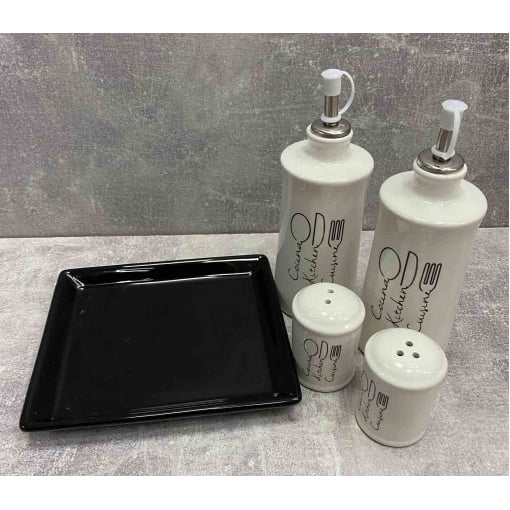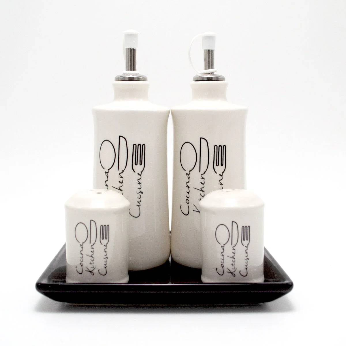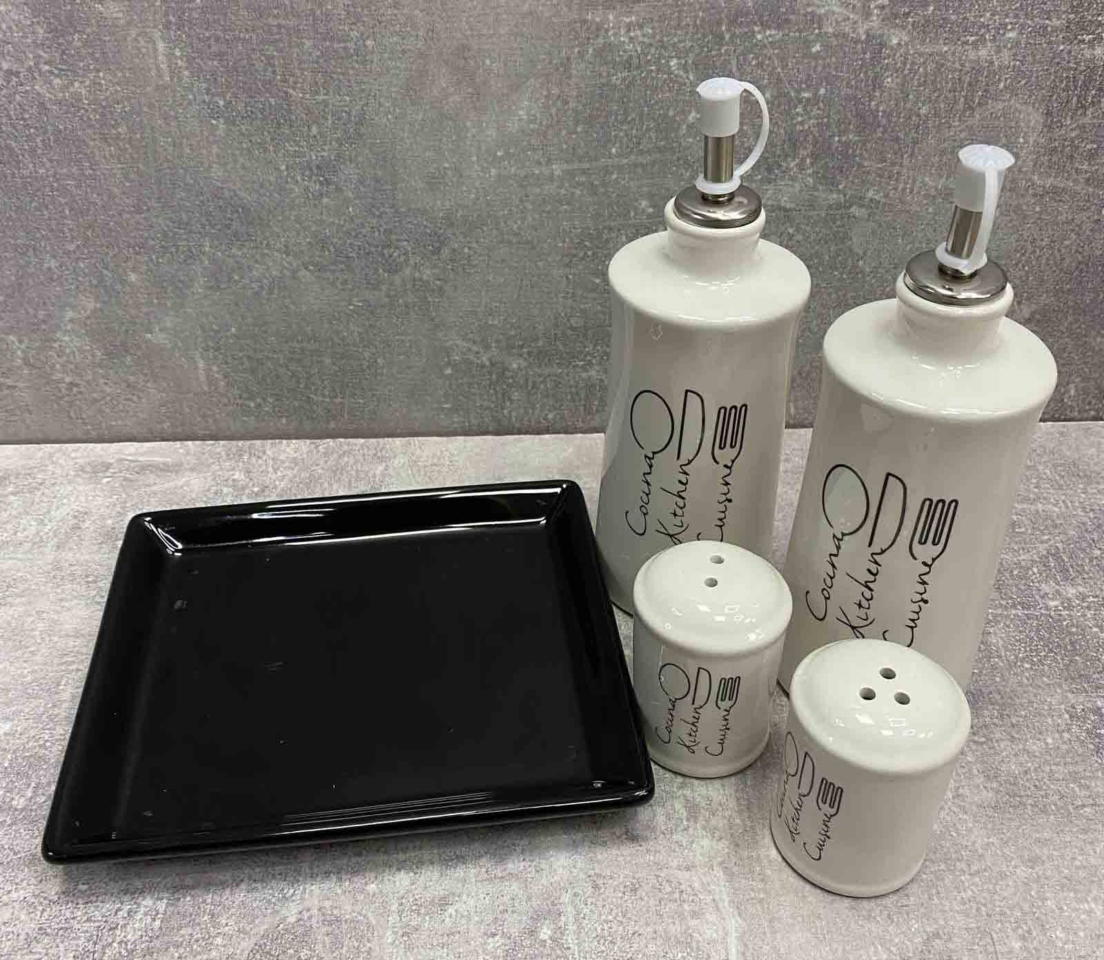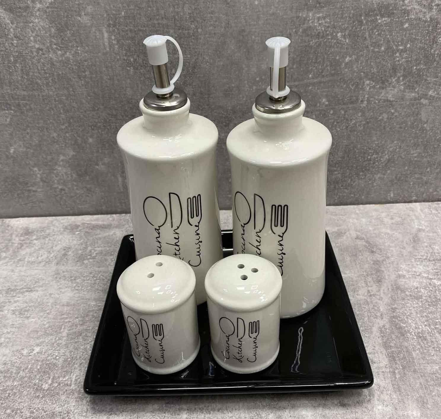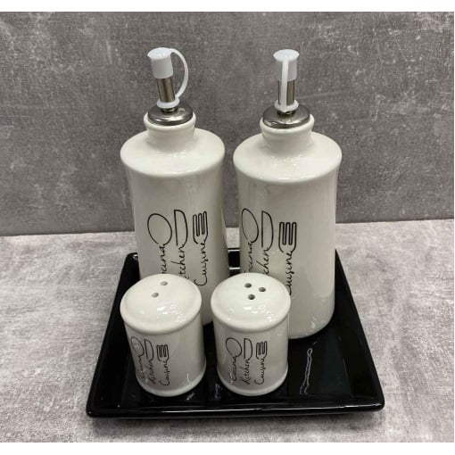 Комплектация: 2 бутылки, набор для соли и перца, керамическая подставка