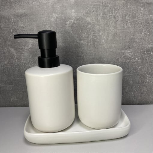 Стильный и функциональный набор аксессуаров для ванной и кухни.