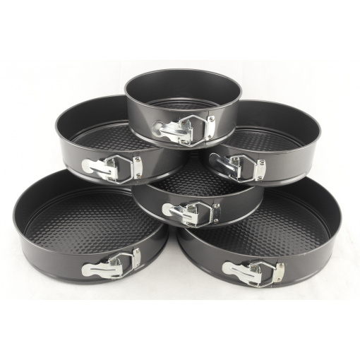 Набор из шести круглых разъемных форм из высококачественной углеродистой стали с антипригарным покрытием.