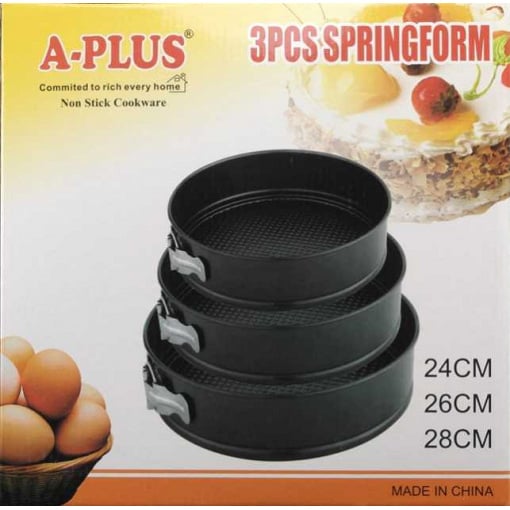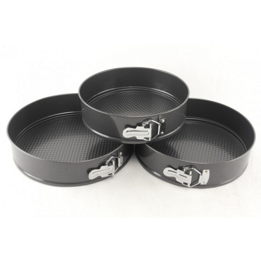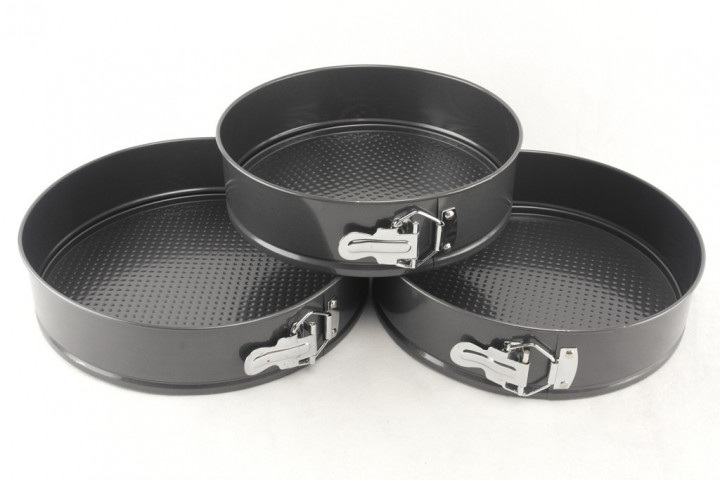Набор из трех круглых разъемных форм из высококачественной углеродистой стали с антипригарным покрытием.