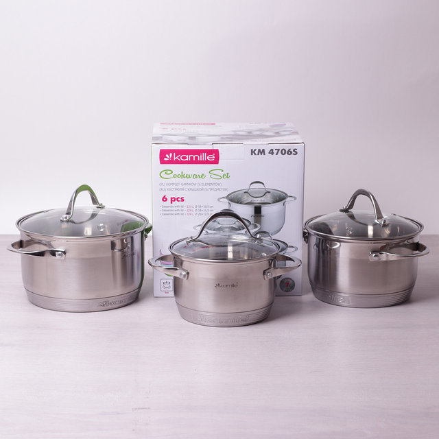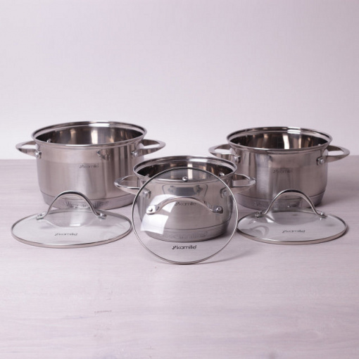 Набор кастрюль 6 предметов (2,1 литра, 2,9 литра, 4 литра), 7-слойное дно Kamille 4706S