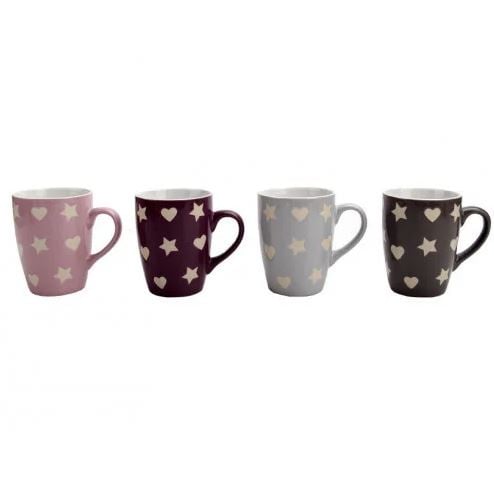 Набор кружек 340 мл Interos Звезды / Сердечки 4 шт MIX ТЕХ.УПАК. Mix KW 139
