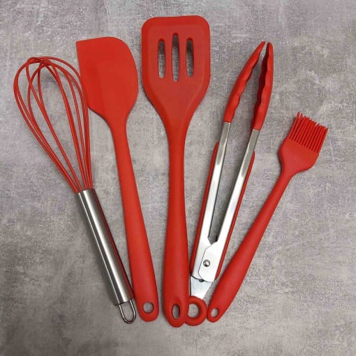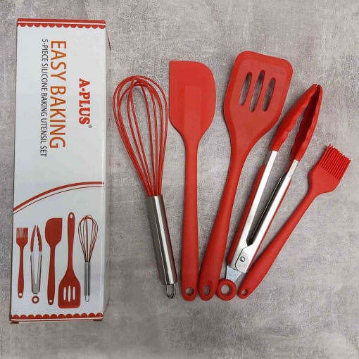 Набор кухонных принадлежностей силиконовый 5 предметов красный A-PLUS 1962