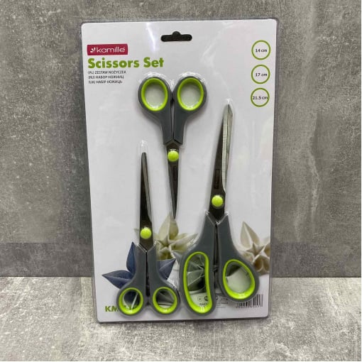 Набор ножниц 3 предмета из нержавеющей стали с пластиковыми ручками Kamille KM-5187 Ножницы универсальные Kamille изготовлены из качественных материалов с использованием современных технологий. Они имеют прочный механизм и оснащены специальными антискользкими вставками на ручках, благодаря чему они не будут скользить в руке. В использовании ножницы Kamille достаточно просты и удобны и непременно прослужат Вам очень долгое время. Характеристика: Вид: Ножницы Материал: Нержавеющая сталь Материал ручки: Пластик Длина: 14 см, 17 см, 21,5 см