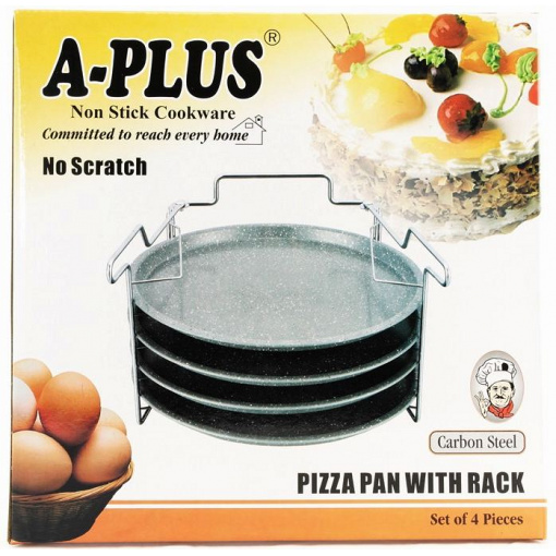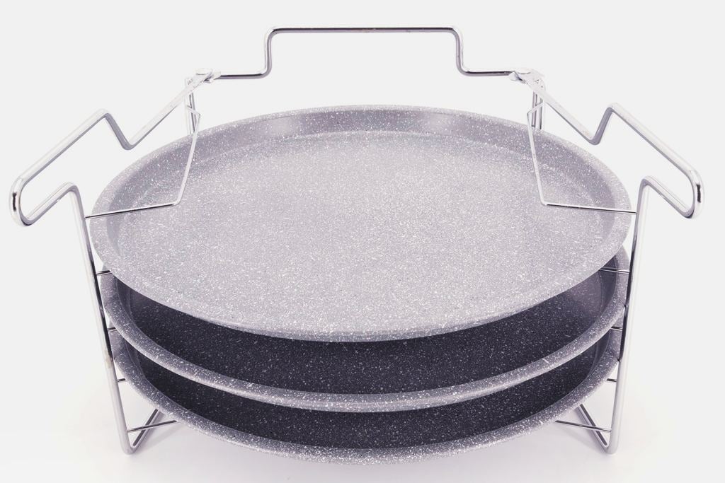 Набор противней для пиццы 3 шт с антипригарным покрытием на подставке A-PLUS 1150