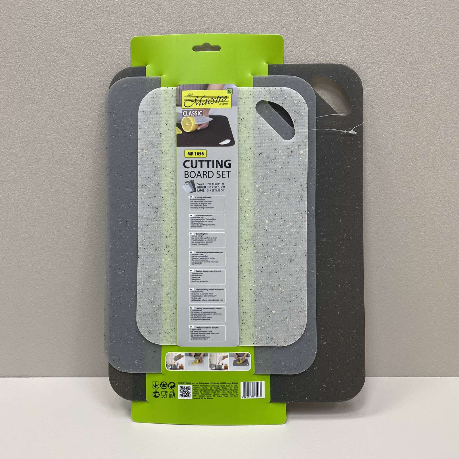 Набор разделочных досок 3 предмета Maestro MR-1656 Характеристика: Вид: Разделочные доски Тип поставки: Набор Материал: Пластик Количество в наборе: 3 предмета Размер: 29*19 см, 33,5*24 см, 38*29 см