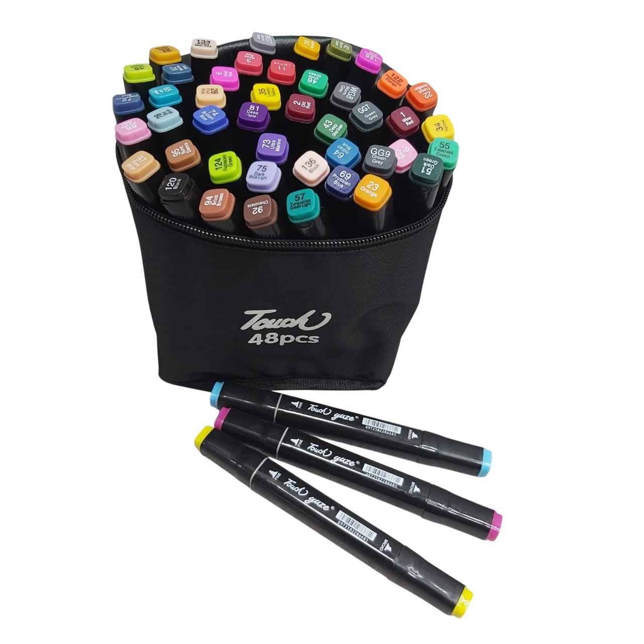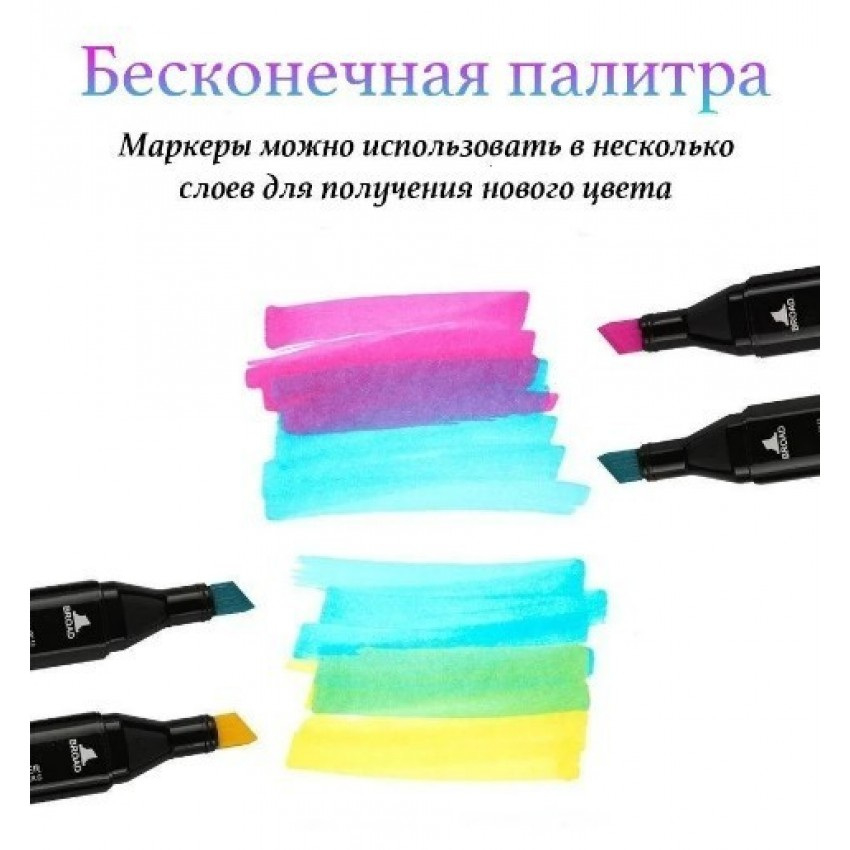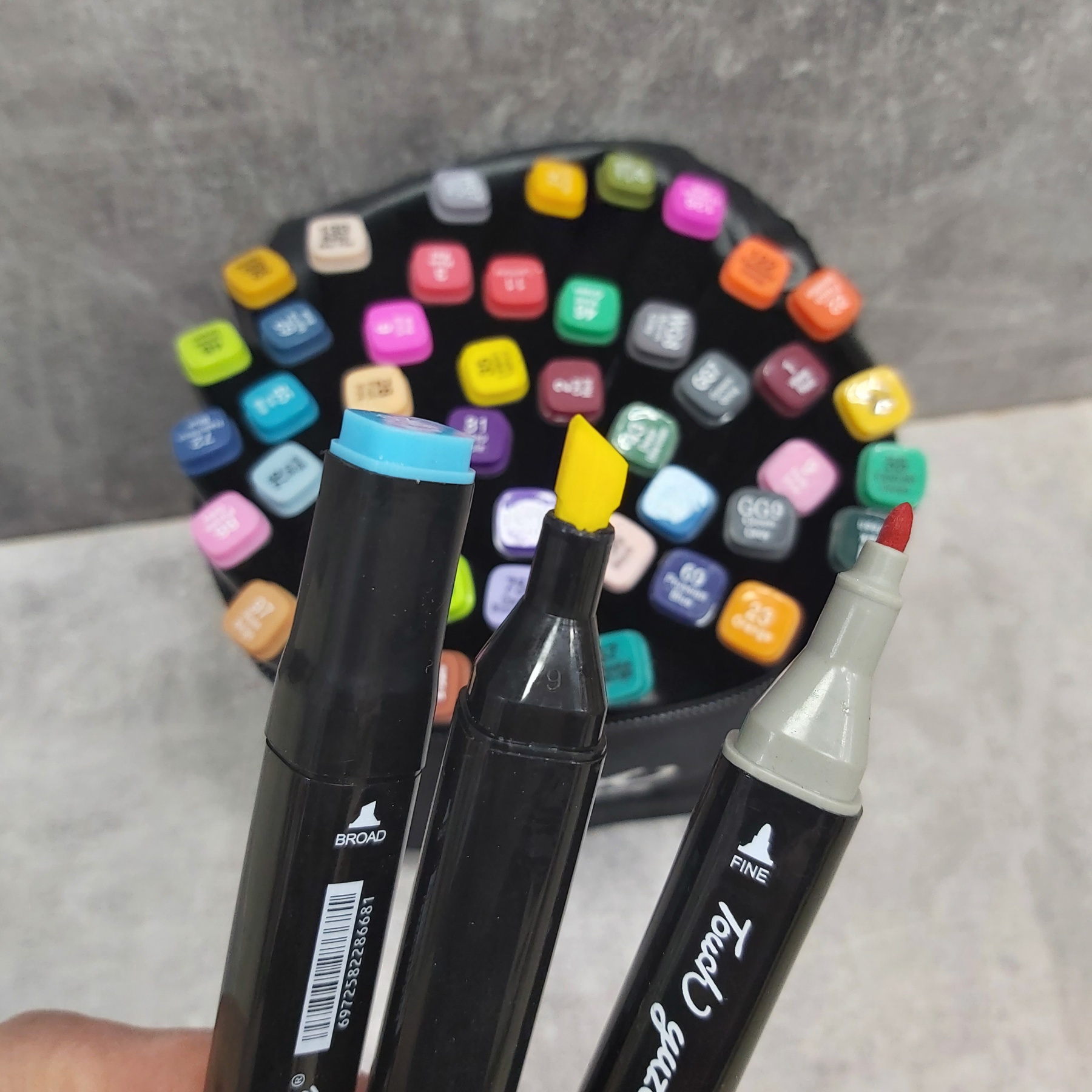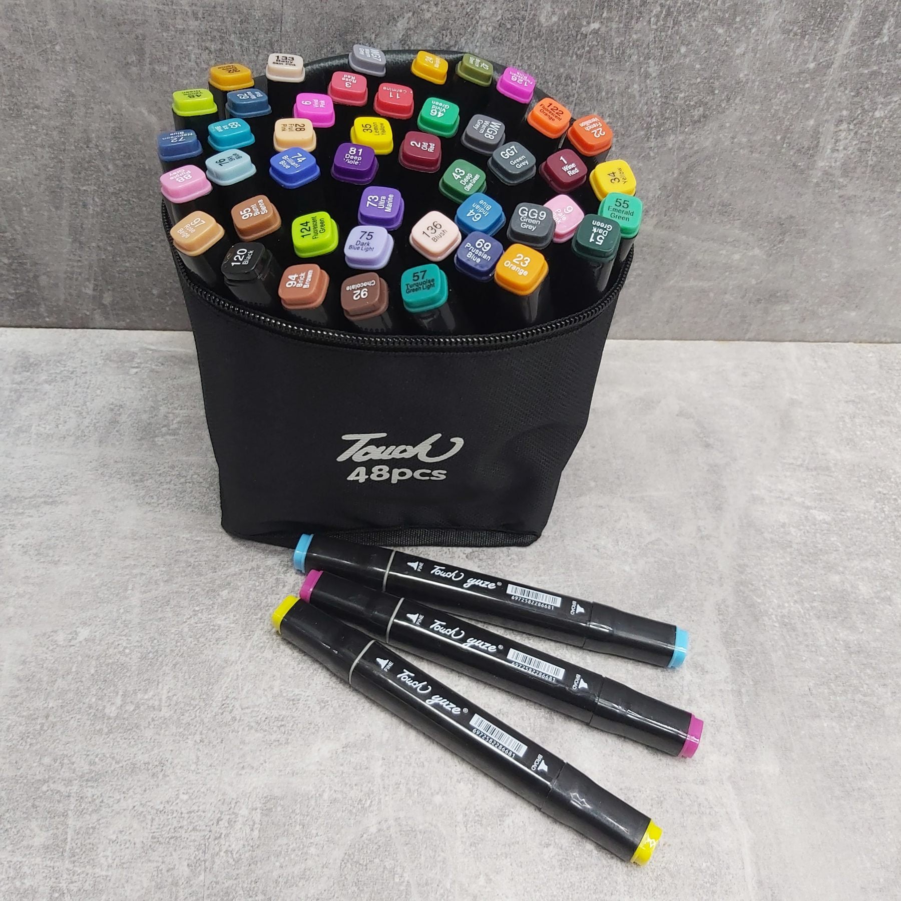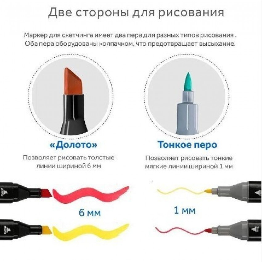 Набор двухсторонних скетч маркеров Touch Migo 48 шт Качественные двусторонние маркеры можно использовать для профессионального рисования разных иллюстраций. Они отлично пишут на разных материалах. Спиртовое основание позволяет быстро высыхать маркеру, поэтому на бумаге он не размазывается. Каждый маркер в наборе скетч-маркеров имеет один тонкий наконечник – предназначен для рисования тонких линий и прорисовки различных деталей. В то время как другой наконечник более толстый, подходит для заштриховки больших поверхностей. А также для рисования толстых полосок. Характеристика: Вид: Скетч маркер Тип поставки: Набор Количество в наборе: 48 шт