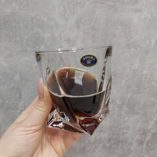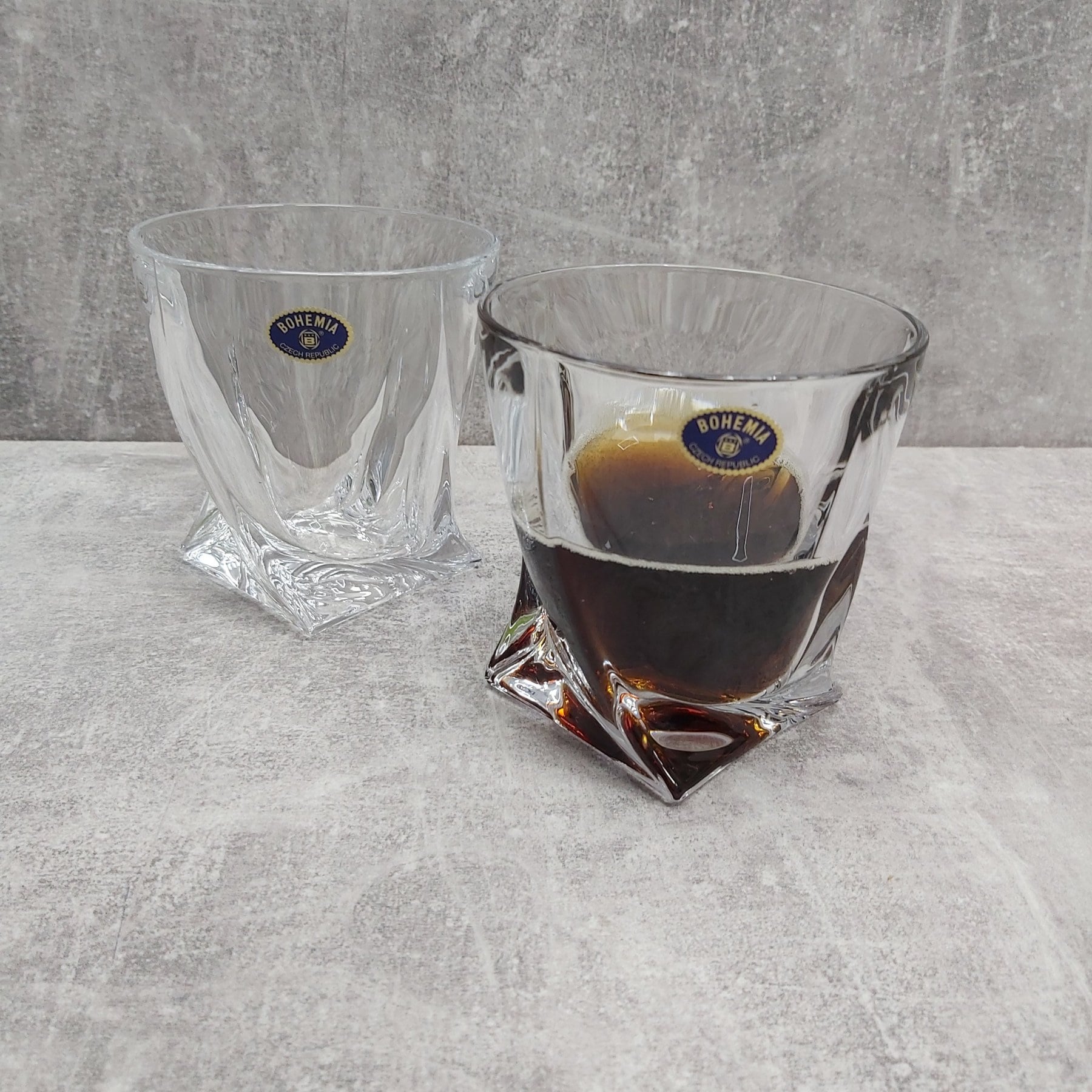 Набор стаканов для виски Bohemia Quadro выглядит торжественно и украсит любой праздничный стол.Изготовлен из богемского стекла которое является примером высочайшего качества изготовления посуды, а также олицетворяет изделия торговой марки, которая существует на протяжении нескольких эпох. Стаканы нельзя мыть в посудомоечной машине, ставить в микроволновку или оставлять в холодильнике. Все это приведет к блеклости и потере блеска поверхности посуды. Мыть данную посуду нужно под теплой (не горячей) проточной водой. В стаканы категорически нельзя наливать горячие напитки.