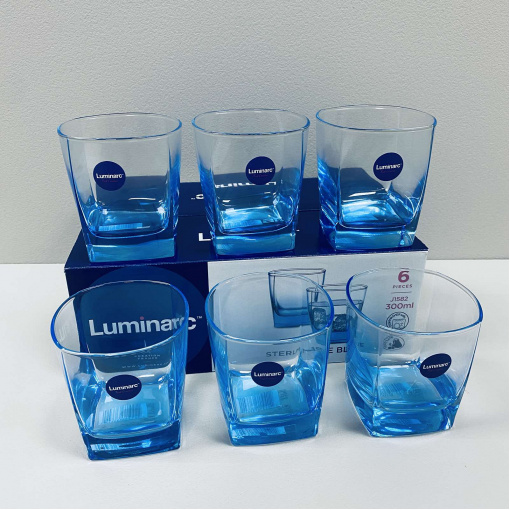 Набор стаканов 6 шт 300 мл Luminarc Sterling Ice Blue J1582 Характеристика: Вид: Стакан Тип поставки: Набор Материал: Стекло Объем: 300 мл Количество в наборе: 6 шт Высота: 9 см Размер: 8,1*8,1 см, по дну – 6*6 см