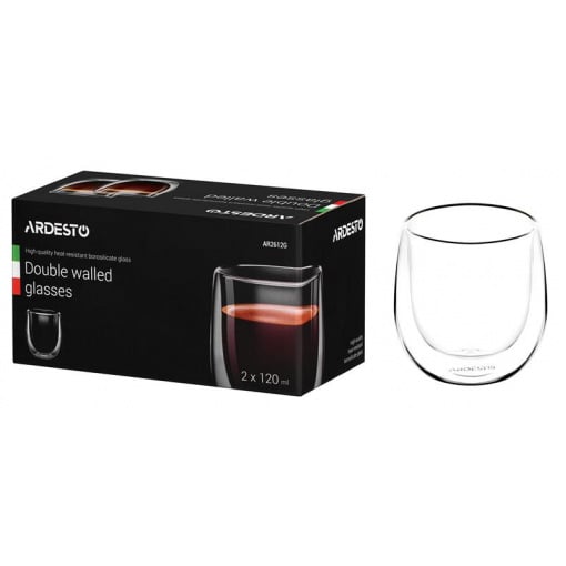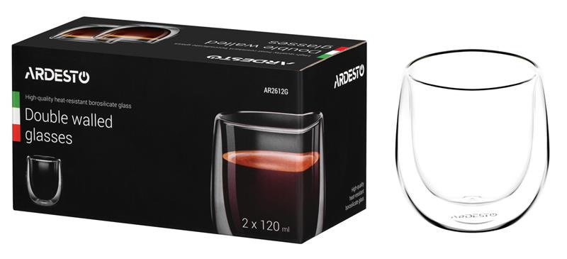 Набор стаканов с двойными стенками для американо 120 мл 2 шт боросиликатное стекло Ardesto AR2612G