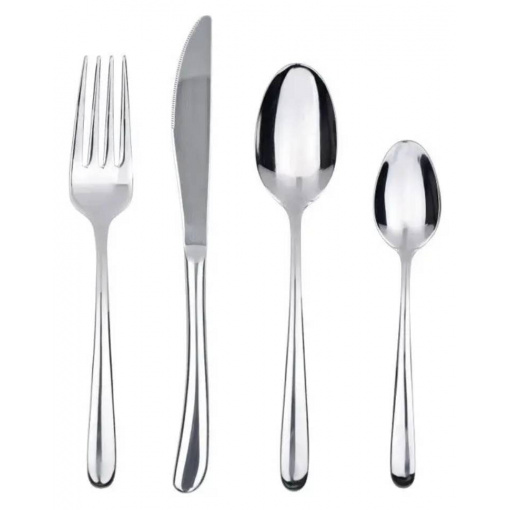 Комплектация: 4 столовых ложек, 4 столовых ножей, 4 столовых выделки, 4 чайных ложек