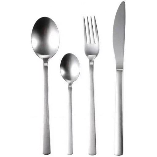 Характеристика: Вид: Столовые приборы Тип поставки: Набор Материал: Нержавеющая сталь Цвет: Стальной Количество в наборе: 24 шт Комплектация: 6 столовых ложек, 6 столовых вилок, 6 столовых ножей, 6 чайных ложек.