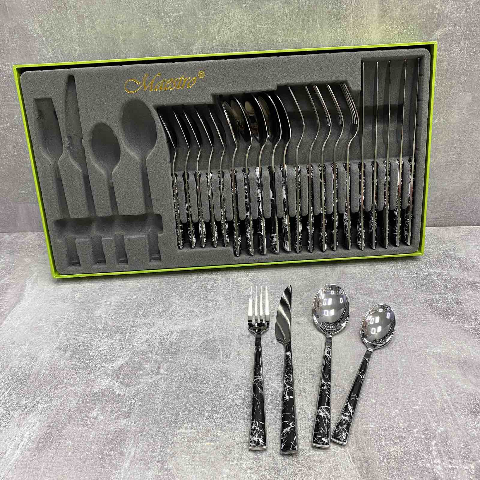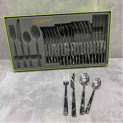 Набор столовых приборов 24 предмета черный мрамор Maestro MR-1535-24-2В