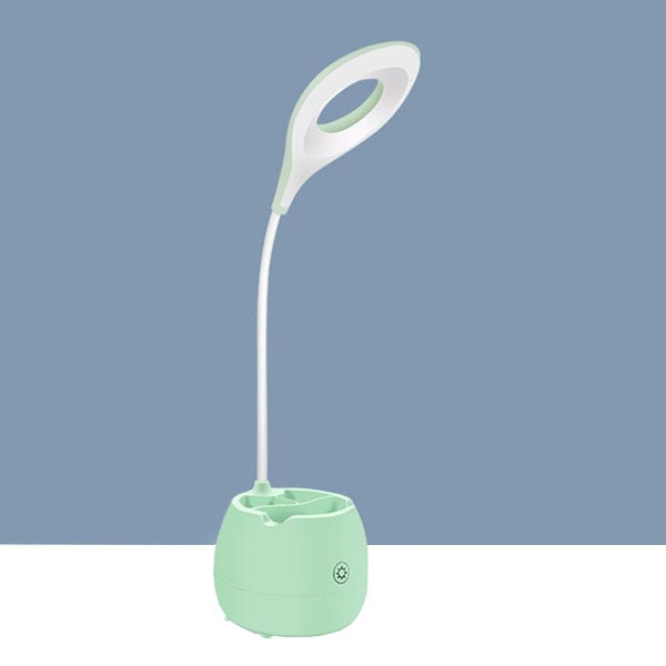 Настольная светодиодная лампа – яркий и стильный аксессуар, который украсит ночные посиделки с друзьями, подсветит клавиатуру в темноте и поможет в работе с важными документами. Модель предусматривает возможность работы как от встроенного аккумулятора, так и от внешнего источника питания: от сети, ноутбука, повербанка. Поэтому смело берите ее с собой и включайте дома, в офисе или отдыхая на летней террасе на даче. Светодиодная лампа обеспечит яркое освещение на протяжении длительного времени. Изделие имеет 3 уровня яркости, поэтому вы с легкостью сможете подобрать оптимальный режим свечения для работы и чтения, а также использовать лампу в качестве ночника. Лампа имеет гибкую ножку, которую можно сгибать под любым углом. Особенность данной модели заключается в том, что лампа имеет дополнительное отделение для канцелярских принадлежностей. Теперь вам не придется загромождать стол пеналами, органайзерами или подставками.