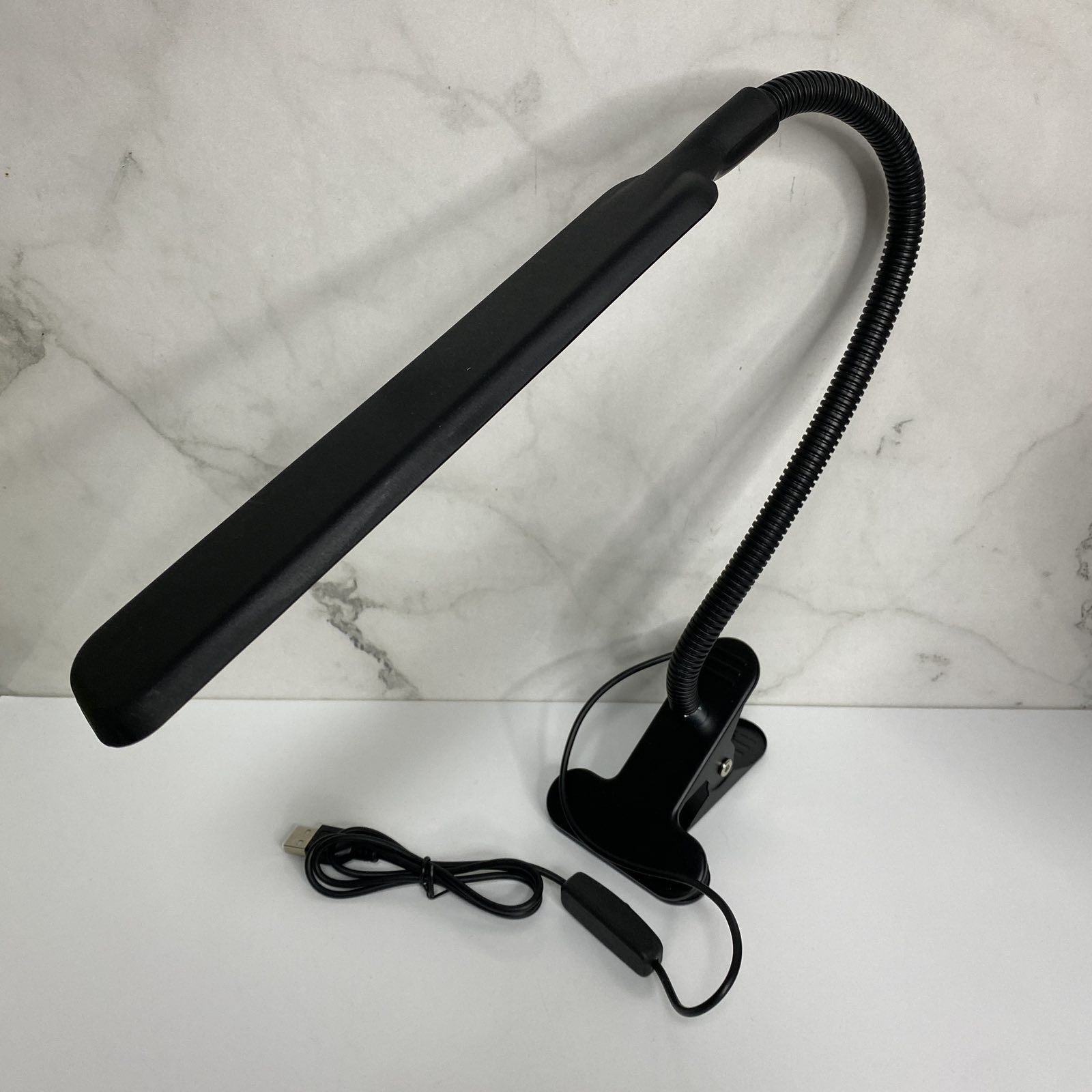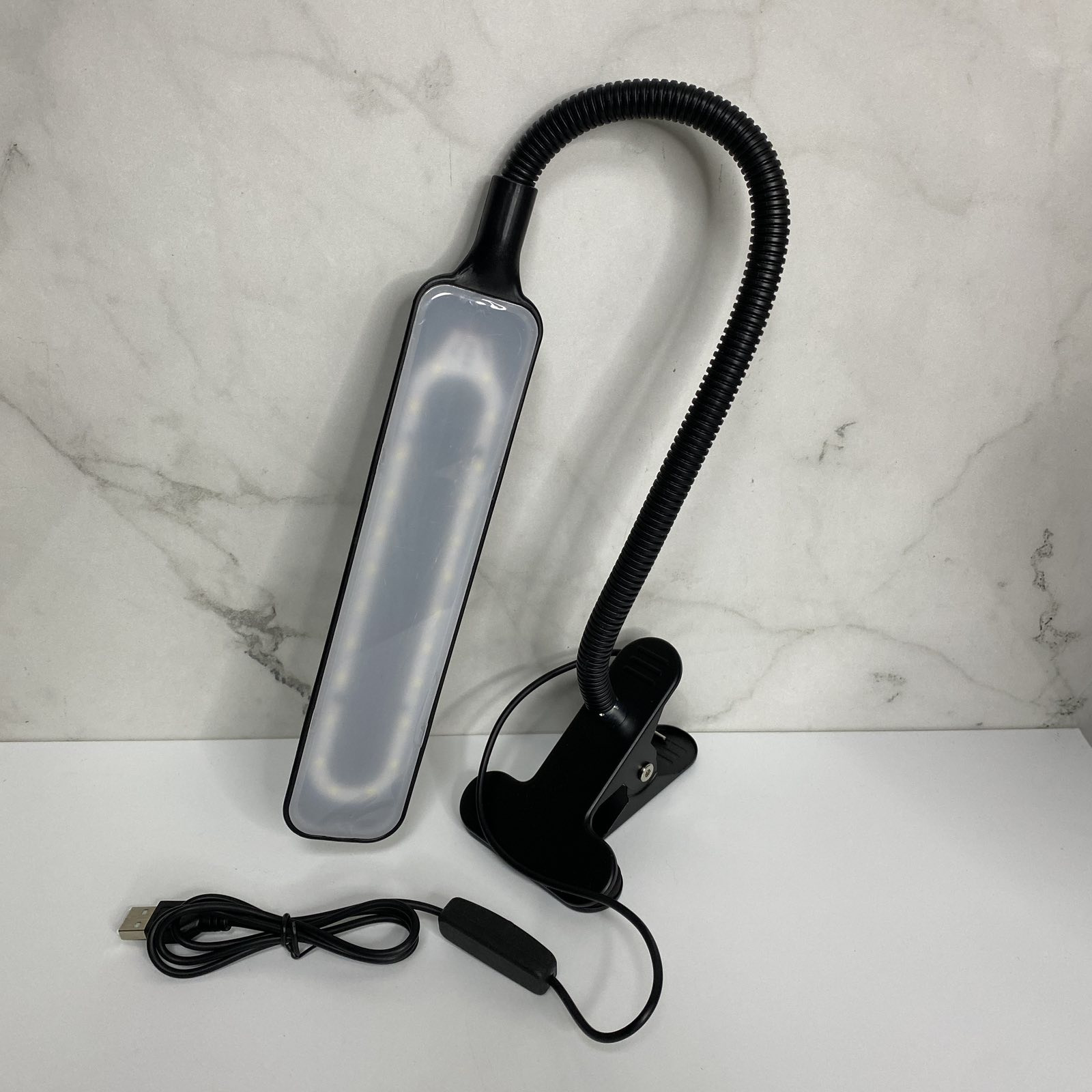 Настольная лампа светодиодная с прищепкой гибкая A-Plus XSD-206 черная Настольная лампа светодиодная гибкая LED на прищепке - сделана в оригинальном дизайне, что позволяет использовать её как дополнительное освещение в различных условиях и помещениях .В данной модели 24 ярких светодиода обеспечивает холодный белый свет.. Плафон сделан из белого матового пластика. Ножка LED лампы сделана из гибкого материала, благодаря чему, Вы с легкостью сможете придать нужный угол наклона светильника и направить поток света на необходимую область.. Прищепка способна зафиксироваться на любой плоской поверхности до 6 см толщиной. Работает данная лампа-прищепка от любого USB источника питания - ноутбук, ПК, повербанк или от сети 220В через сетевой переходник (в комплект не входит). Длина USB-шнура составляет чуть больше 100 см. На шнуре имеется механическая кнопка для вкл/выкл лампы. Характеристика: Вид: Настольная лампа Материал: Пластик питание от USB кабеля Количество светодиодов: 24 Мощность: 10 Вт Гибкая ножка Цвет: Черный Размер светильника: 21*4,5*0,5 см Длина кабеля: 106 см