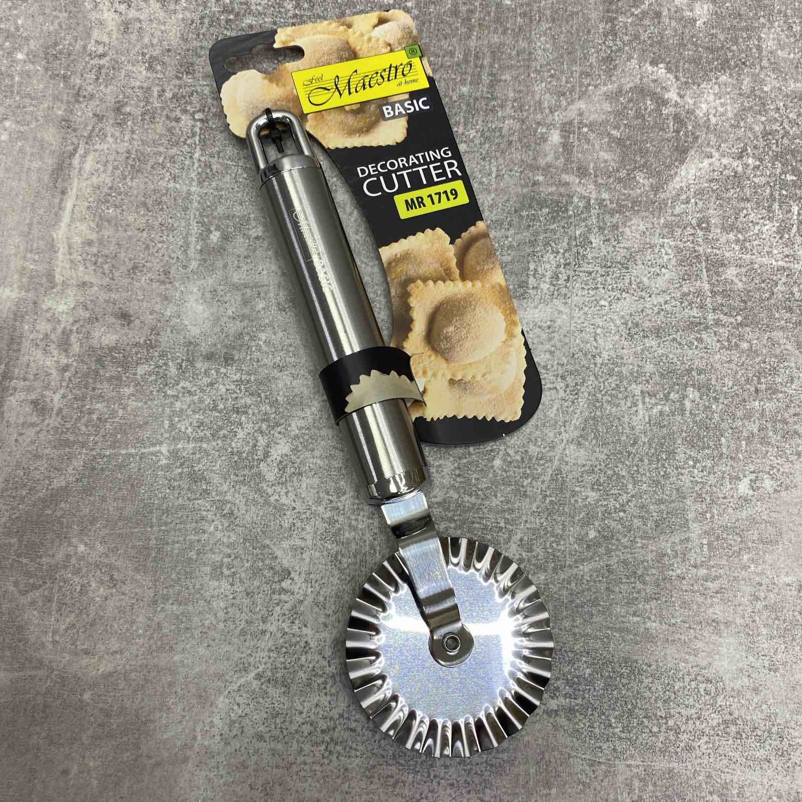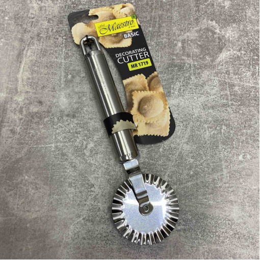 Нож Maestro MR 1719 предназначен для фигурной и декоративной нарезки тонко раскатанного теста, изготовлен из высококачественной нержавеющей стали, легко моется. Позволяет вырезать из теста какие-либо фигуры с красивой волнистой кромкой.