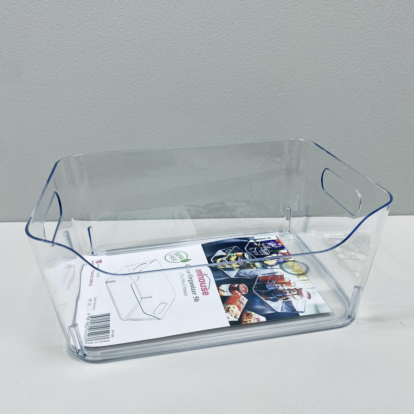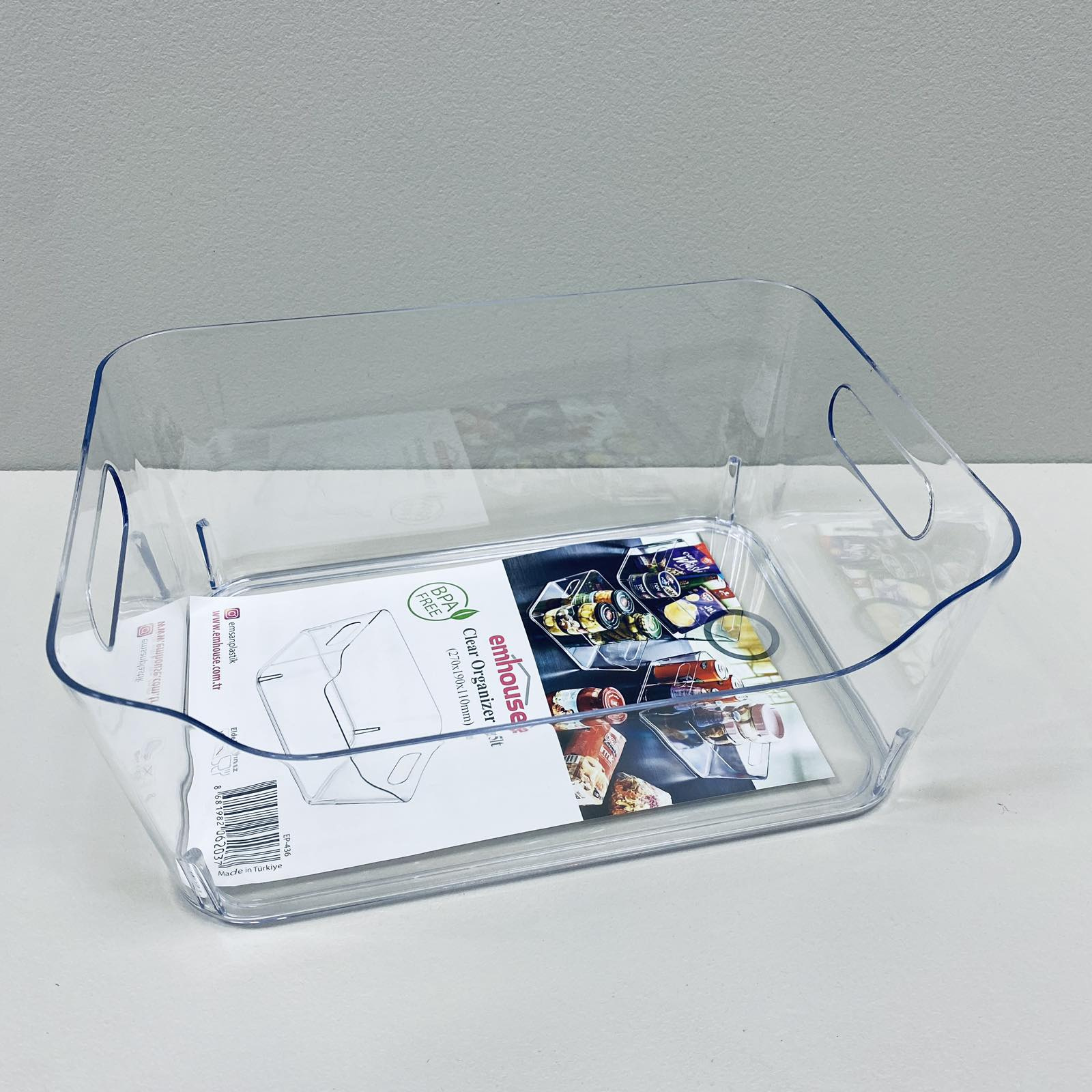 Органайзер для холодильника с ручками 26.9*19.2*11.5 см 5 л Emhouse ЕР-436 Удобный органайзер идеально подходит для хранения продуктов питания. С помощью встроенных ручек можно удобно перемещать контейнер в холодильник, на кухонную поверхность или полку. Каждый контейнер изготовлен из высококачественного прозрачного пластика и имеет удобные ручки, а также специальные разъемы позволяют ставить контейнера один на другой. Характеристика: Вид: Органайзер Материал: Пластик Размер: 26.9*19.2*11.5 см Цвет: Прозрачный Форма: Прямоугольная