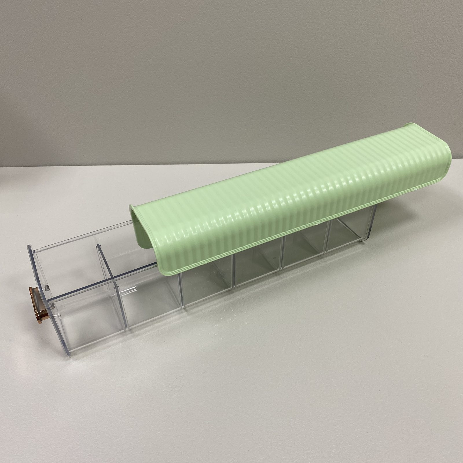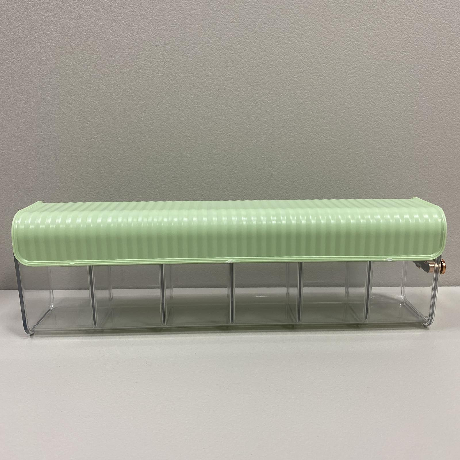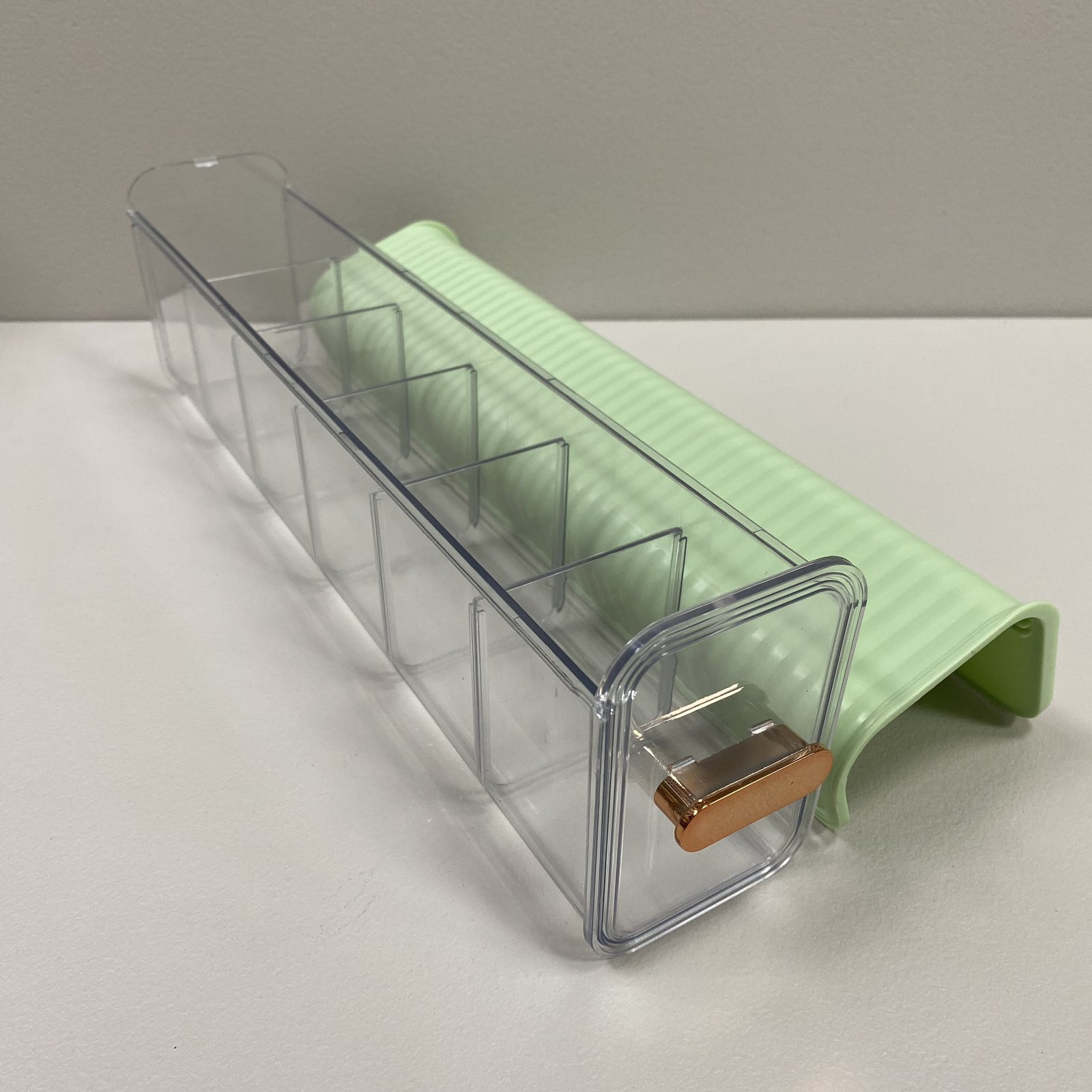 Органайзер для хранения настенный пластиковый 37*8,5*11 см Stenson R93805 Удобно использовать в шкафу для белья и аксессуаров, на кухне для специй или в ванной комнате для разных мелочей. Характеристика: Вид: Органайзер Назначение: Для хранения Материал: Пластик Размер: 37*8,5*11 см Цвет: Прозрачный с салатовым
