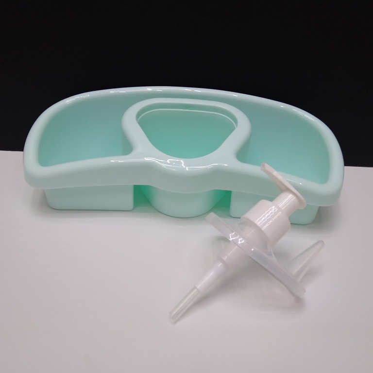 Подставка для мочалок и дозатор для жидкого моющего средства позволяет организовать рабочую поверхность возле мойки на кухне. Благодаря органайзеру мочалки для посуды хранятся в одном месте, вода с них стекает в подставку, а расход моющего средства уменьшается.