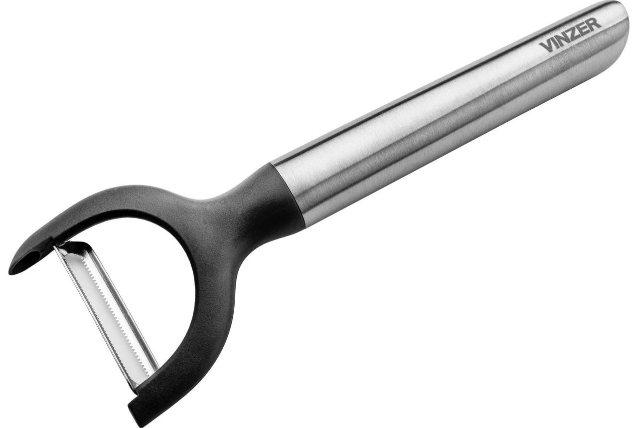 Любите много и вкусно готовить, однако не хотите проводить на кухне всё свободное время&a;#063; Найдите себе побольше помощников! Овощечистка VINZER с острым подвижным поперечным лезвием из высококачественной нержавеющей стали срезает даже самую тонкую кожуру. Благодаря мелким зубчикам на лезвии овощечистка крепко цепляется за кожуру, тем самым не только исчезает риск порезаться острием, но еще вы сможете очень тонко и аккуратно очистить овощи или фрукты. Также вы можете легко убирать