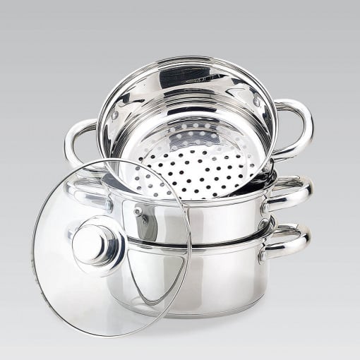 Пароварка из нержавеющей стали 24 см 5 л Maestro MR-2900-24 Характеристика: Вид: Пароварка Материал: Нержавеющая сталь Материал крышки: Стекло Диаметр: 24 см Объем: 5 л Цвет: Стальной